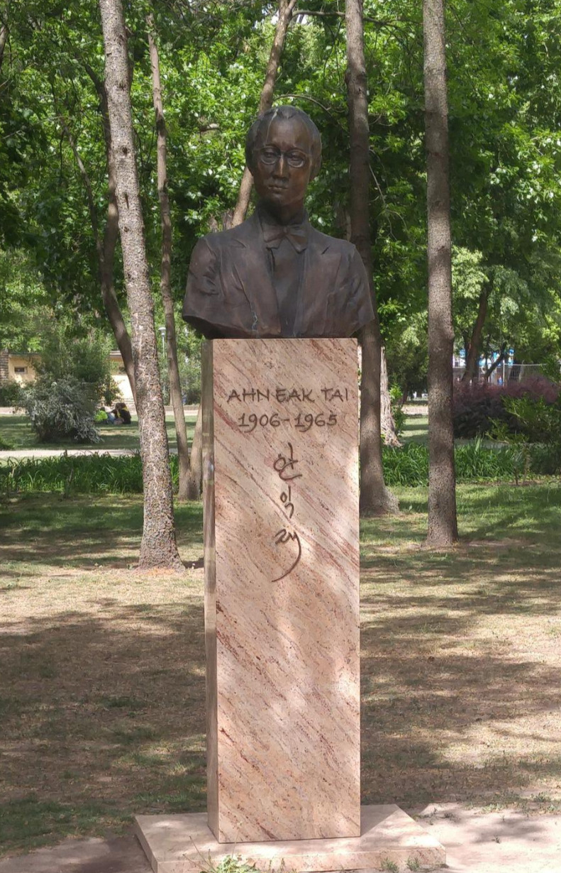 안익태 선생께서 1938년~1941년, 부다페스트 명문 음악대학인 리스트 페렌츠 학교에서 수학한 것을 기념하여 2012년에 서울시가 3만 달러의 경비를 들여 건립한 것이라고 한다. 우리가 수십 년 불러온 애국가를 작곡한 분에 대한 경외감을 잠시 되살려본다.