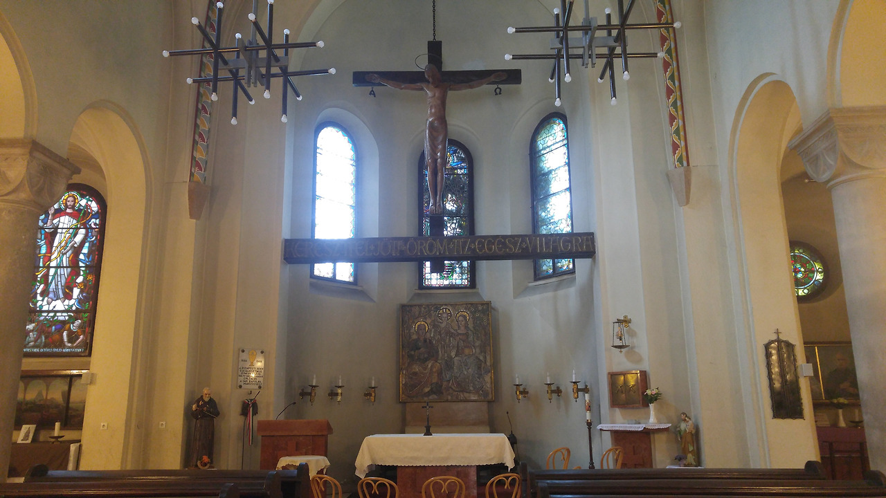 성당 내부에는 당대의 저명한 헝가리의 예술가인 모르 탄, 베르탈란 세케이, 쥴러 벤추르 등의 작품으로 가득하다. 벤추르의 성화는 성 이슈트반 왕이 헝가리 왕관을 성모 마리아에게 바치는 장면을 그린 것인데 이는 곧 중앙아시아로부터 이주해 온 이교도 마자르족이, 이슈트반 왕을 통해 기독교 국가가 되면서 유럽의 일부가 되었음을 내외에 과시하는 내용을 담았다고 한다.