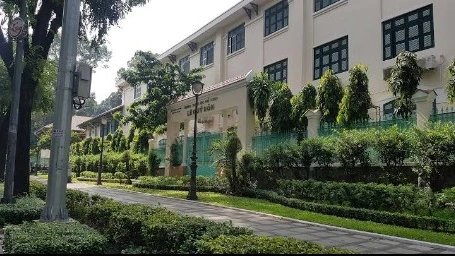 ‘1858년 프랑스는 다낭을 공격하기 위해 불을 지피고 베트남에 대한 침략 전쟁을 시작했다. 1867년 프랑스 인은 코친차이나 (Bien Hoa, Gia Dinh, Dinh Tuong, Vinh Long, An Giang 및 Ha Tien) 대륙을 점령했다. 1868년 프랑스 정부는 사이공 중앙에 코친차이나 주지사의 저택을 설계하고 건축하기 시작했다. 이 작업은 1868년 2월 23일 시작되어 1871년 베트남 남부 라그 라디 에르 (Lagradìere) 프랑스 총독에 의해 완성되었다.’ 통일궁 홈페이지의 설명글이다.
