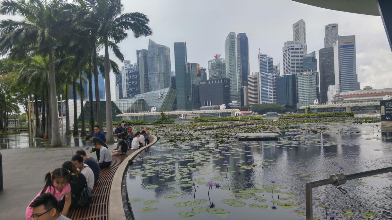 아이들을 대상으로 한 레이저 쇼가 진행되니 그 위를 뛰어다니는 애들도 즐겁고 구경하는 보호자나 우리도 같이 즐겁다. 건물 앞 강가에서 들어온 물줄기로 다리와 분수를 만들어 놓았다. 인공의 힘이 어디까지 인지를 싱가포르에 와서 많이 확장해가고 있다.
