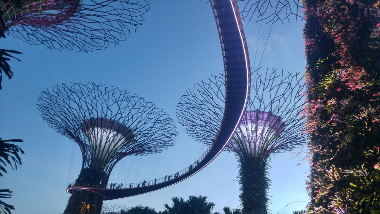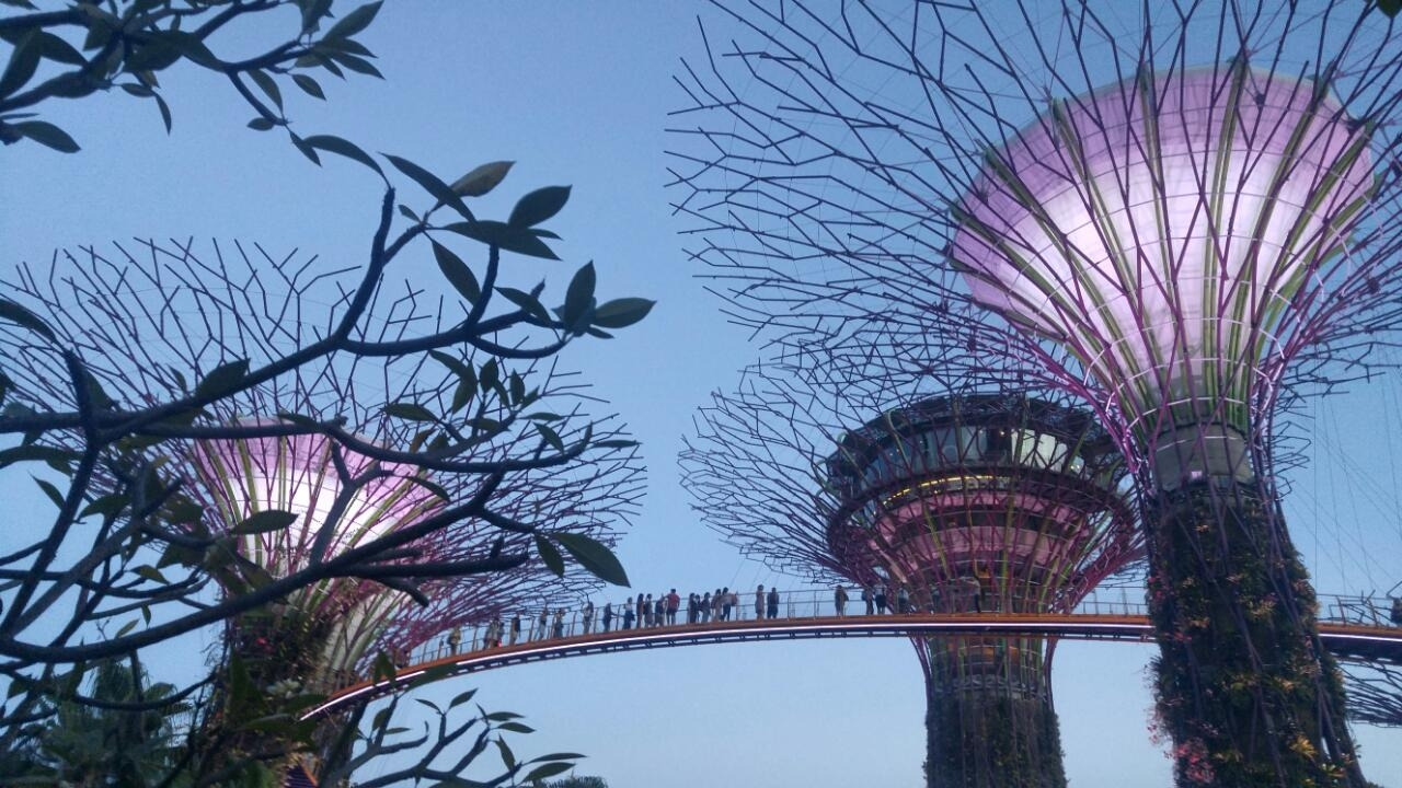 이윽고 어둠이 서서히 깔리고 있었다. 사람들을 따라 가든스 베이로 들어갔다. 가든스 바이더 베이는 정원의 도시라는 계획 하에 만들어진 거대한 열대 정원이다. 크게 플라워 돔과 클라우드 포레스트, 두 개의 돔으로 나뉘어 있다. 열대기후에서 자라기 힘든 식물들을 키우기 위해 인공 환경을 조성해서 꾸며 놓은 곳이며 해안가 매립지에 지었다고 한다.