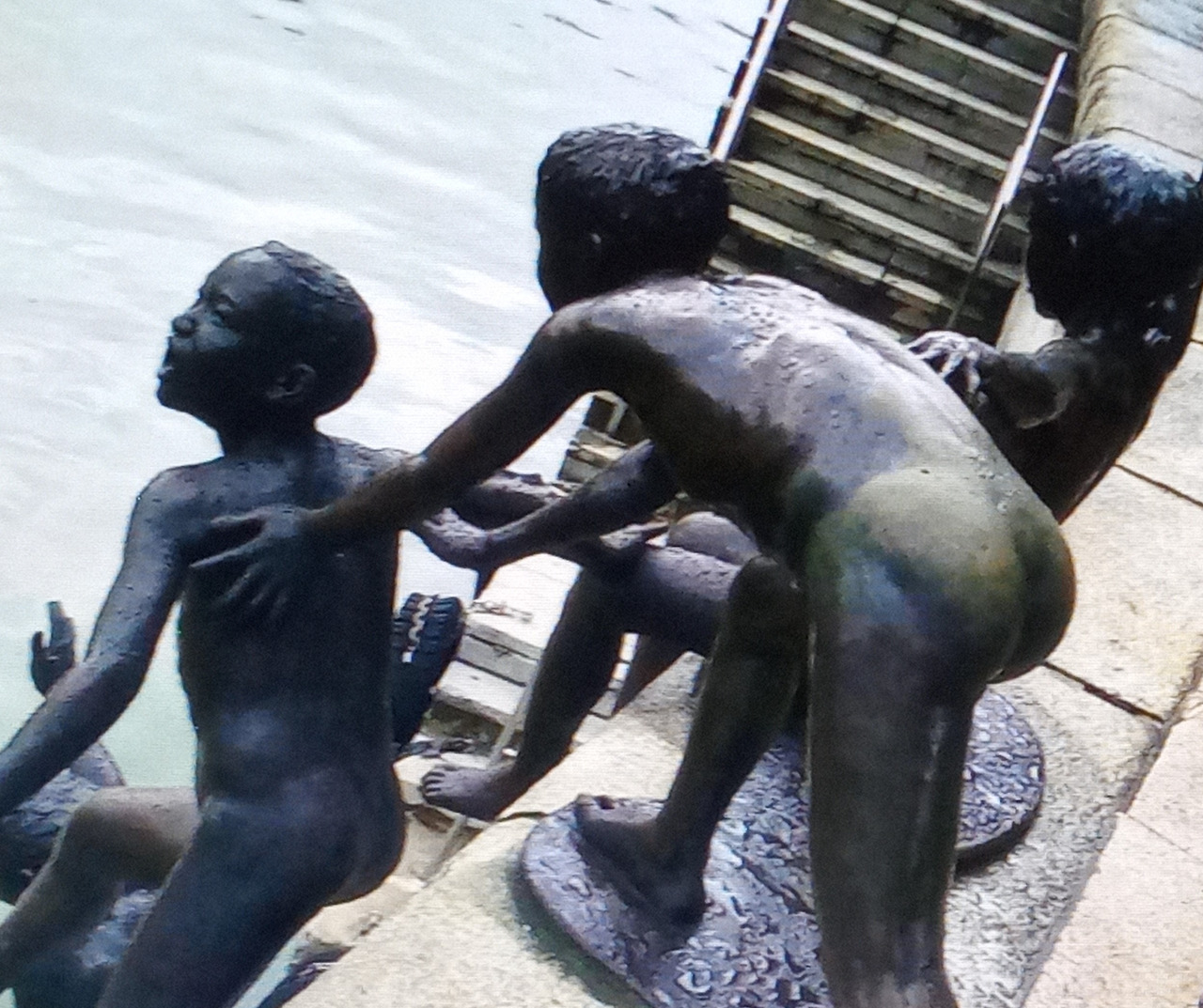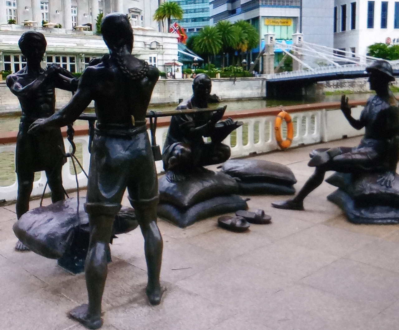 덥긴 하지만 청량한 햇살 아래로 싱가포르 강 양 연안에 여러 테마의 조형물들이 설치되어 있다. 특히 ‘First generation’이라는 테마의, 아이들이 강으로 뛰어드는 조형물이 재미있다. 이곳의 초기 주민의 아이들이 신나게 물놀이를 즐기는 모습이다. 당시 사람들의 생활상을 엿볼 수 있는 옷차림이나 생활도구 등이 재현되어 있다.