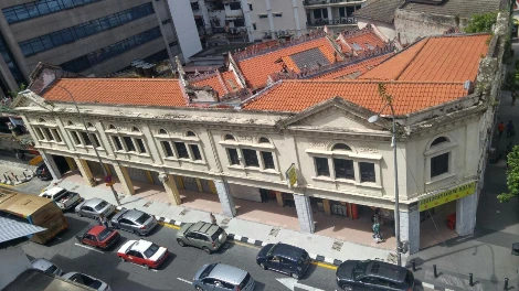 여러 장의 흑백사진에 담겨있는 거리와 숙소의 모습은 영국의 식민지 시절부터 있어온 것으로 역사가 근 100년에 가까움직도하다. 역사적인 삼각형( Historical Triangle )이라고 하는 호텔 앞 삼각형 광장은 도시를 관통하는 초기 도로들인 Jalan Petaling , Leboh Pudu, Jalan Tun HS Lee 의 3길에 에워싸여 만들어진 광장이다.