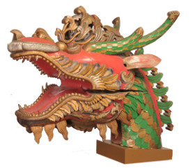 왼쪽: 왕실 뱃머리에 붙인 용머리 조각상, 오른쪽:관음보살상