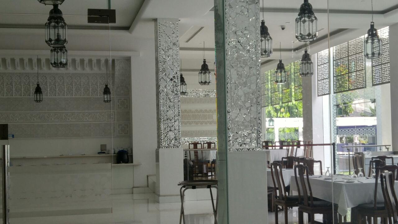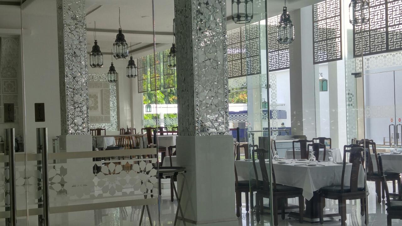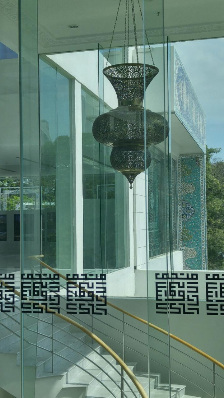 정문을 바라보면 거대한 투명 유리, 유리에 덧씌운 흰색 데코레이션 문양, 그리고 유리를 둘러치는 이슬람 문양과 이슬람식 타일색을 한껏 강조해 주는 흰색 벽면과의 조화로움이 '아름답다'는 감탄을 건물 초입부터 소환한다.