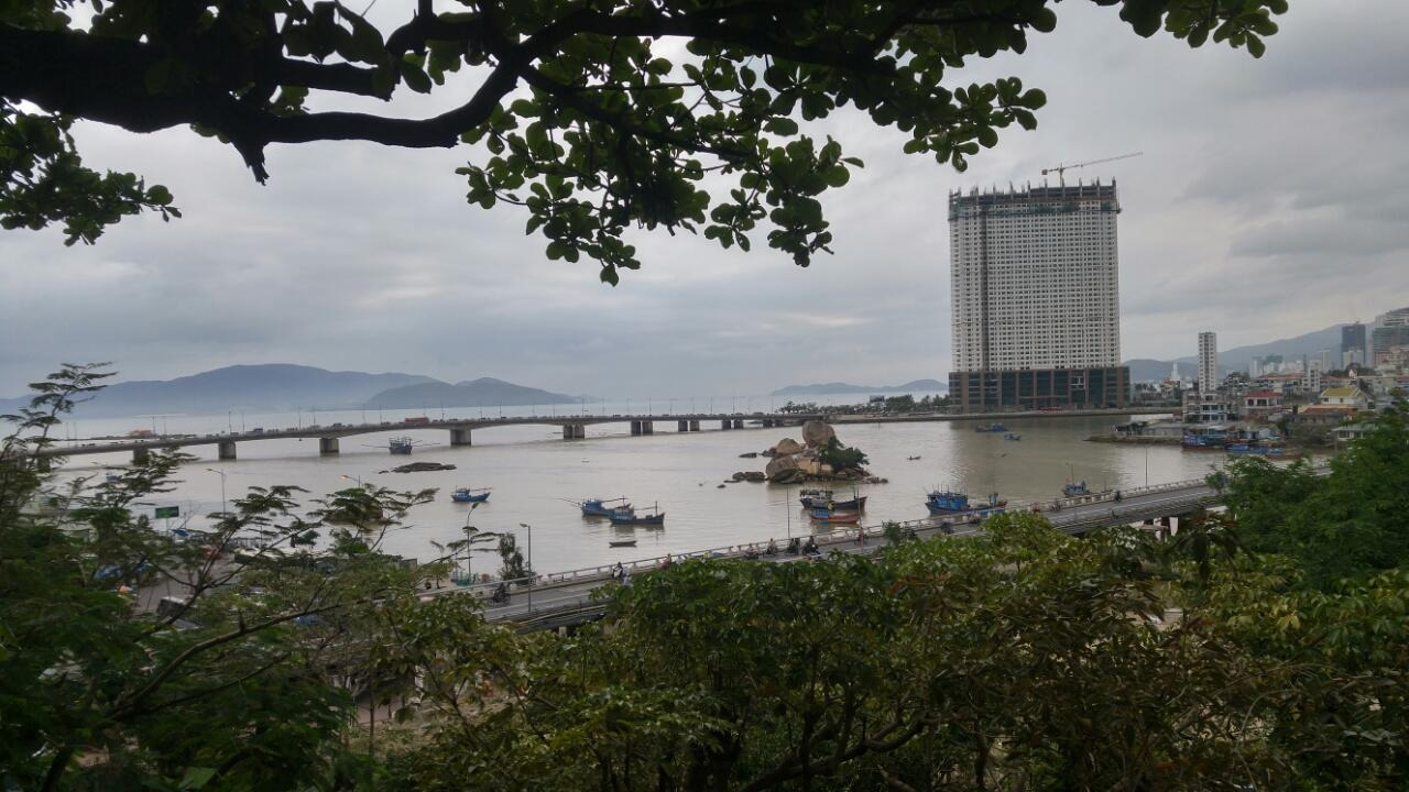 강물이 바다로 나가는 냐짱 시내 쪽, 건설 중인 고층빌딩의 독보적인 높이가 시선을 끈다.