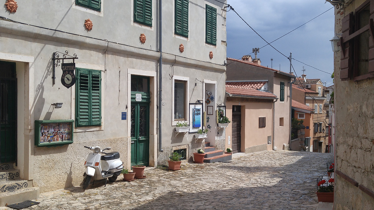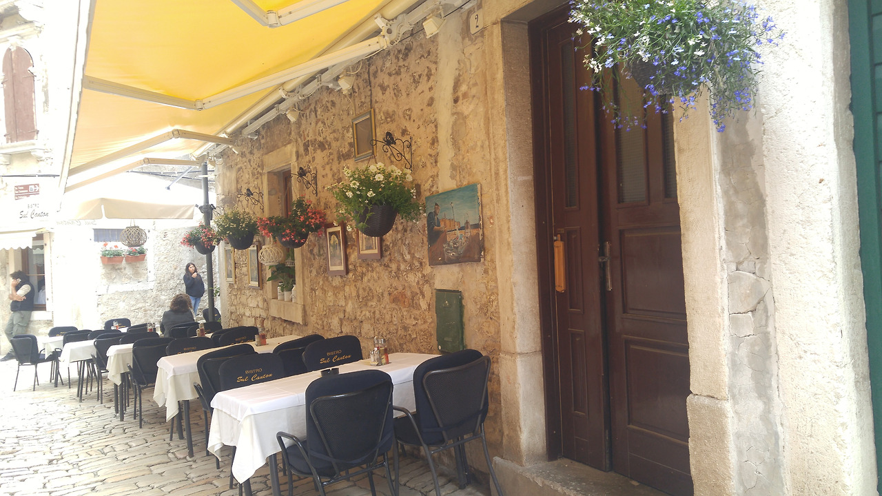 골목을 밝히는 가로등과 창틀에 놓인 예쁜 꽃 화분들, 오래되어 반들거리는 포석과 더불어 이 거리에 살았던 사람들과 상상의 조우를 하다 보니 내가 전생에 크로아티아 사람이었나 싶다. 연극의 세트 장 같기도 하고 과거를 불러오는 환상을 일으키기도 하는 로빈의 구시가지 골목 풍경은 실로 정겹고 감성 충만한 장소이다.