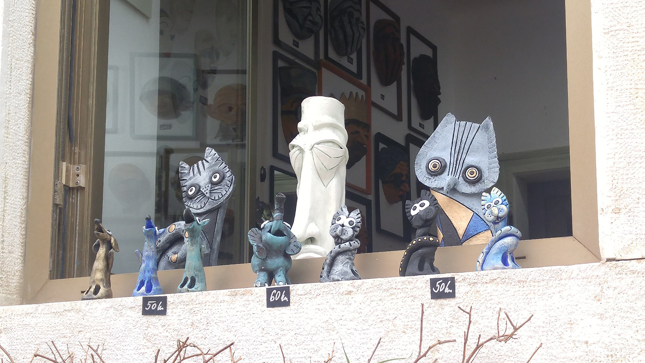성당으로 오르는 골목길에는 갤러리와 공예품 가게들이 늘어서 있다.