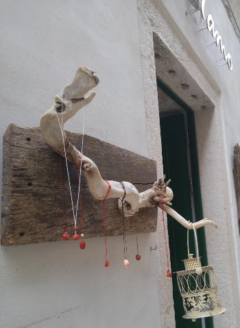 끝없이 펼쳐진 아득한 수평선과 대조적으로 이렇게 가까이에서 투명한 물살을 내어주는 바다가 마냥 신기하다. 건물에는 공방들도 들어앉아 있어서 무심코 내 걸린 것 듯한 조형물들이 해풍에 흔들리며 관광객의 눈길을 끈다.