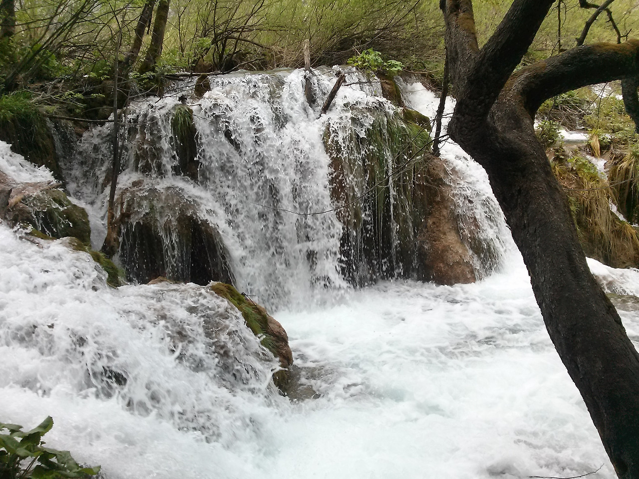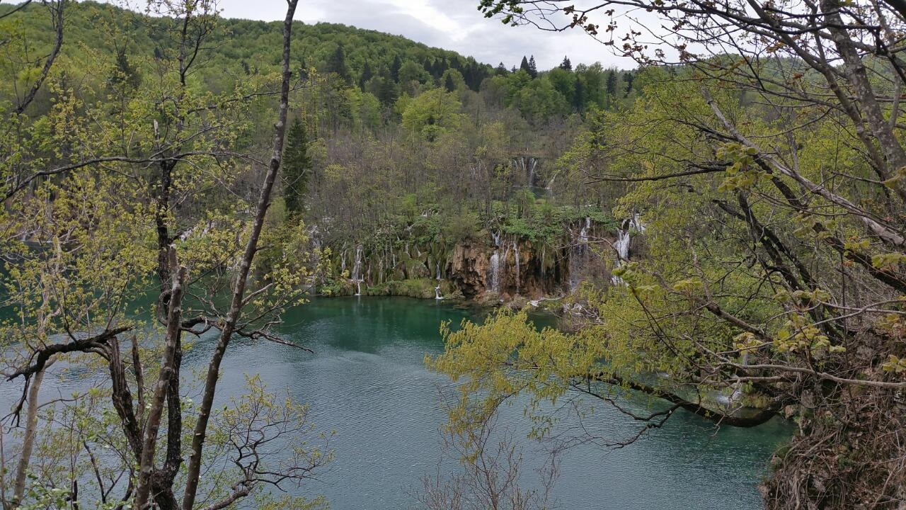 유록의 수목과 들판의 연녹 평원이 영화의 배경화면처럼 스펙터클 하게 다가왔다가는 뒤로 물러서기를 반복하는 새, 35분간 상영이 끝나고 드디어 플리트비체에 당도했다.
