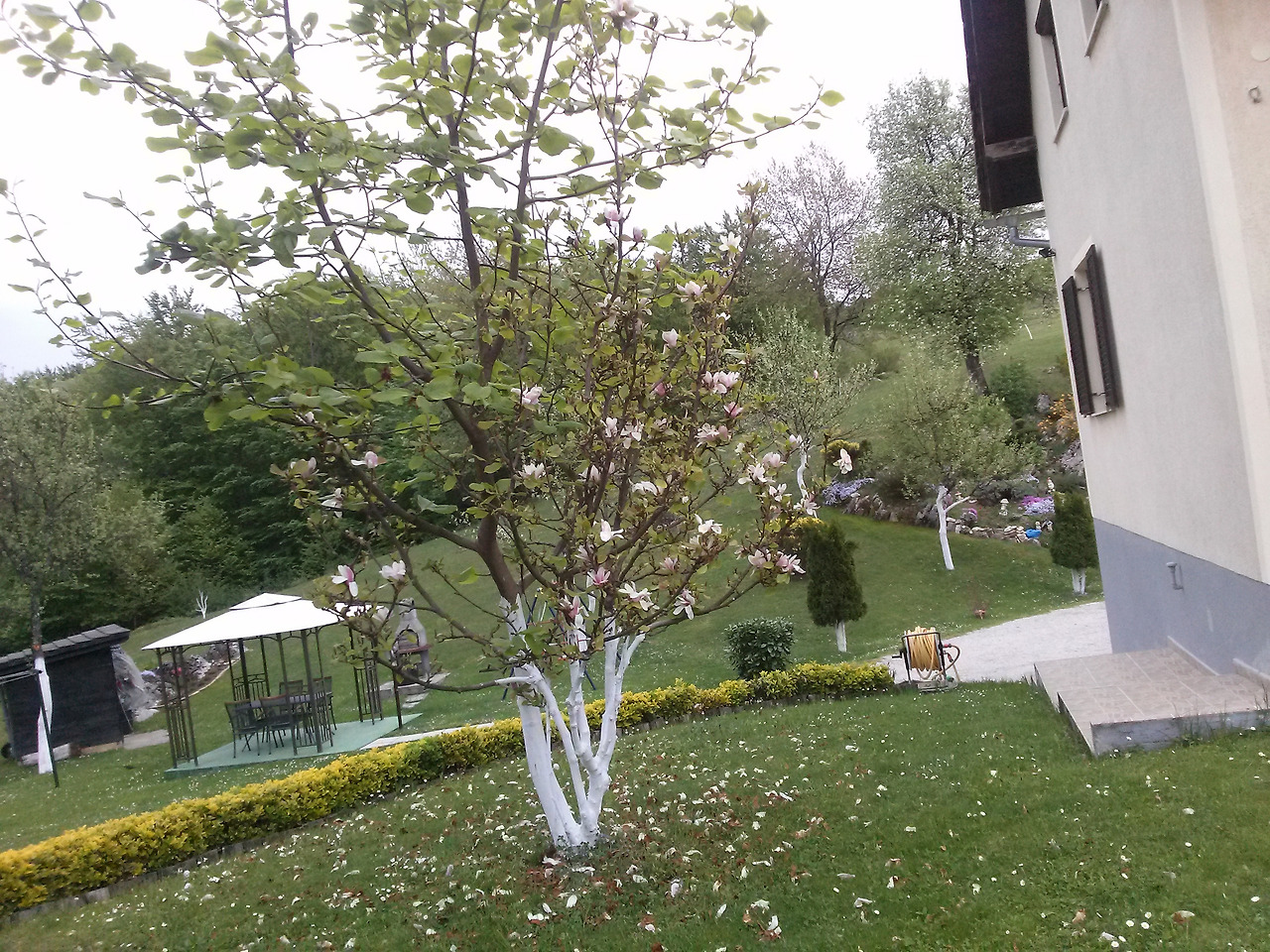 가지마다 흰 꽃 소담하게 달고 있는 과수원 果木 사이에 아기자기한 농가들이 보이고,