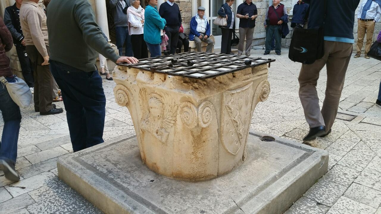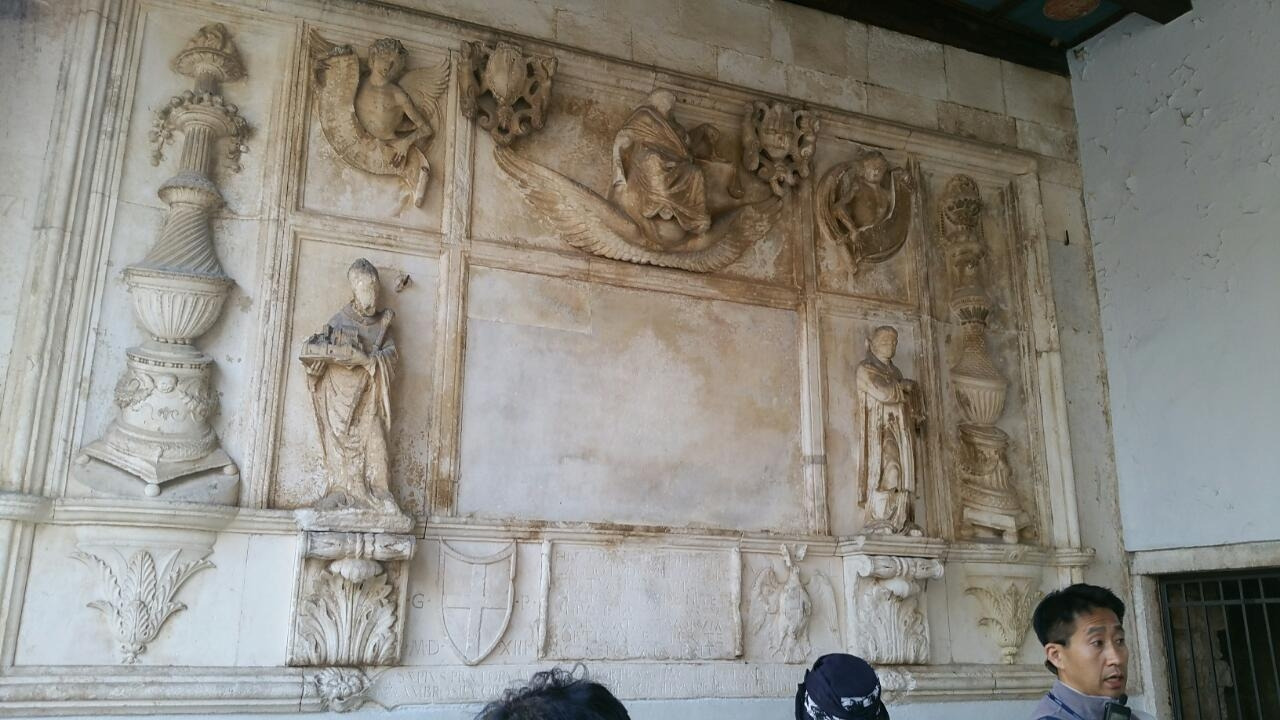 중앙의 텅 빈 사각형 자리에는 원래 베네치아 상징인 사자가 조각되어 있었다고 한다. 아마도 베네치아 이후의 시절에 없앴을 것으로 추정한다고.