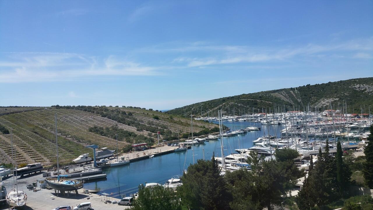 크로아티아 본토와 치오보 섬 사이를 흐르는 바다 너머로는 디나르 알프스의 회색빛 거친 석회암 줄기가 웅장하게 옆으로 누워있다.