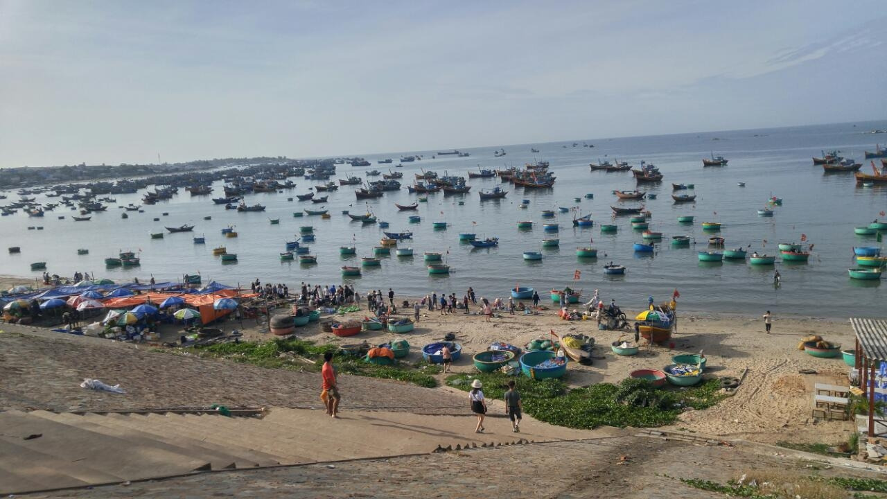 바닷가를 끼고 달리다 세번째 방문지 피싱 빌리지, 어촌에 이르렀다. 관광객 반, 어촌민 반이 뒤섞여 바닷가 어시장은 북새통이다. 몇 년 전에 보았던 여행 프로그램에서의 무이네 풍경과는 너무 다르다. 나는 내려가지 않고 위에서만 바라보았다. 이들의 전통 반구형 어로배들이 바다에 그득하다. 해산물을 구입하는 사람들도 많다.