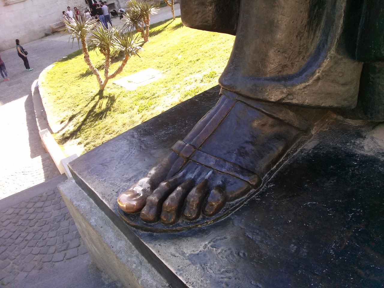 동상의 왼쪽 엄지발가락을 만지면 행운이 온다는 전설이 있어,