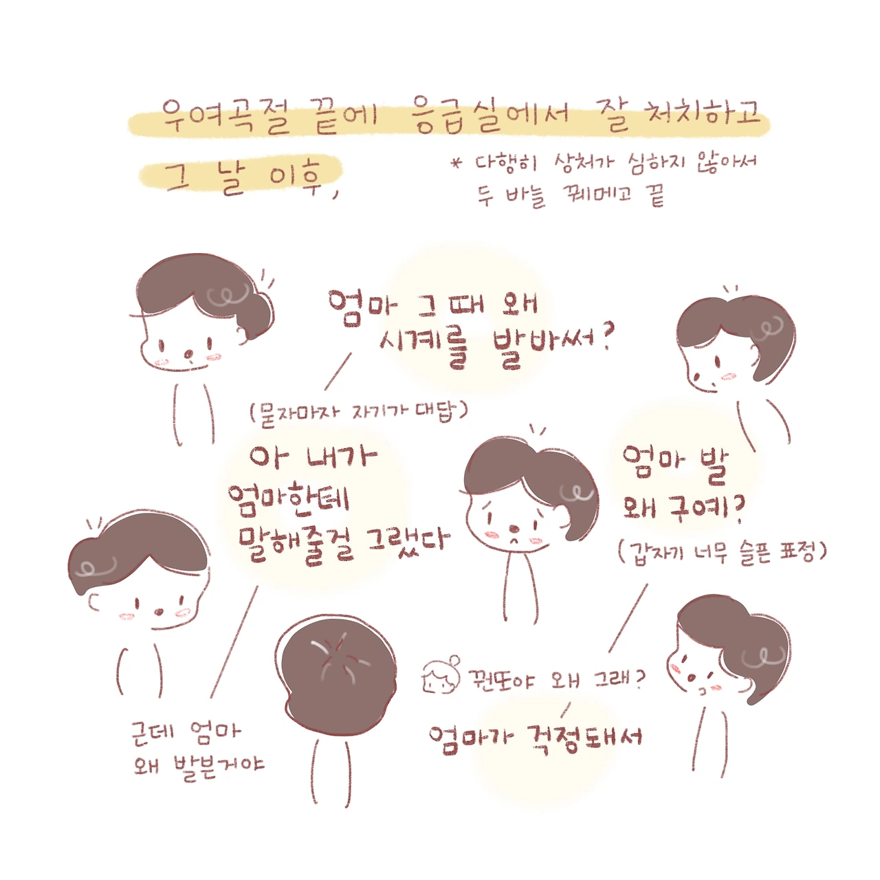 처음 겪은 일, 피나는 엄마 발에 놀라고 걱정되는데