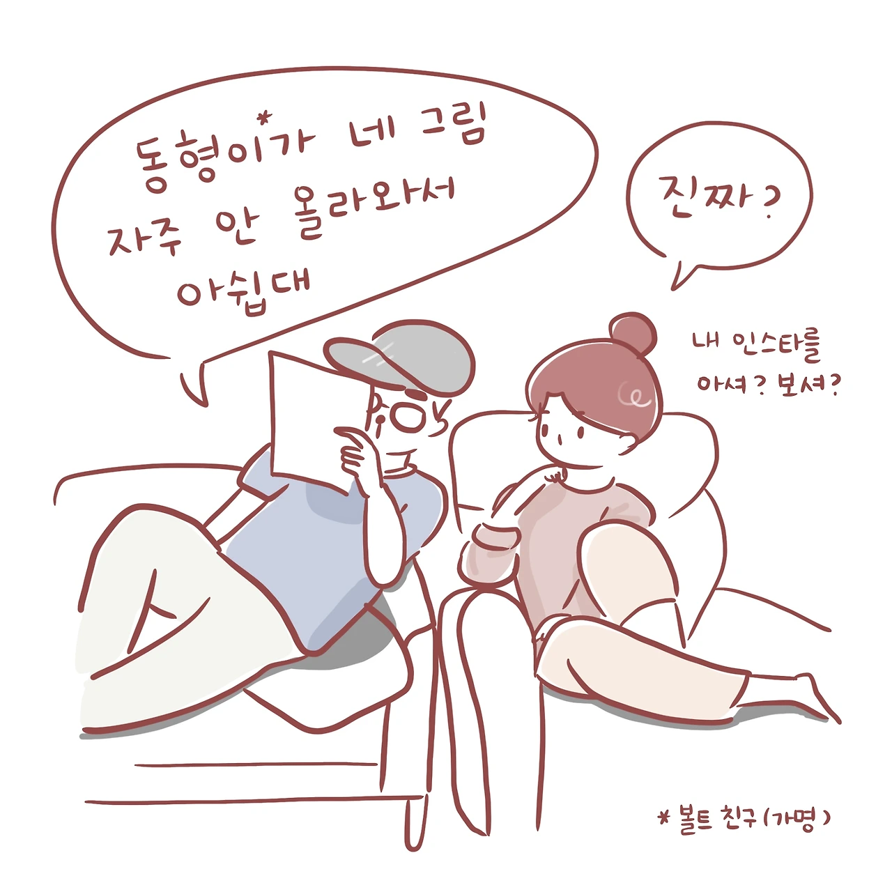 볼트 : 여태 그림 왜 못 그렸는지를 (=핑계를) 그렸구나?나 : ㅇㅇ하고 싶은 말이 너무 많아서,