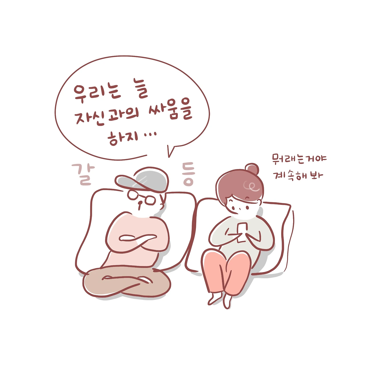 단, 다른 날 반대 위치라면 기꺼이 나도 한다. (의리) 입술 깨물었지만 결국 충전기 꽂는 이유, 내일은 내가 덕 보겠다는 마음. 폰 충전, 알람 맞추기, 형광등 끄기 #상부상조 자잘하게 5편까지 기