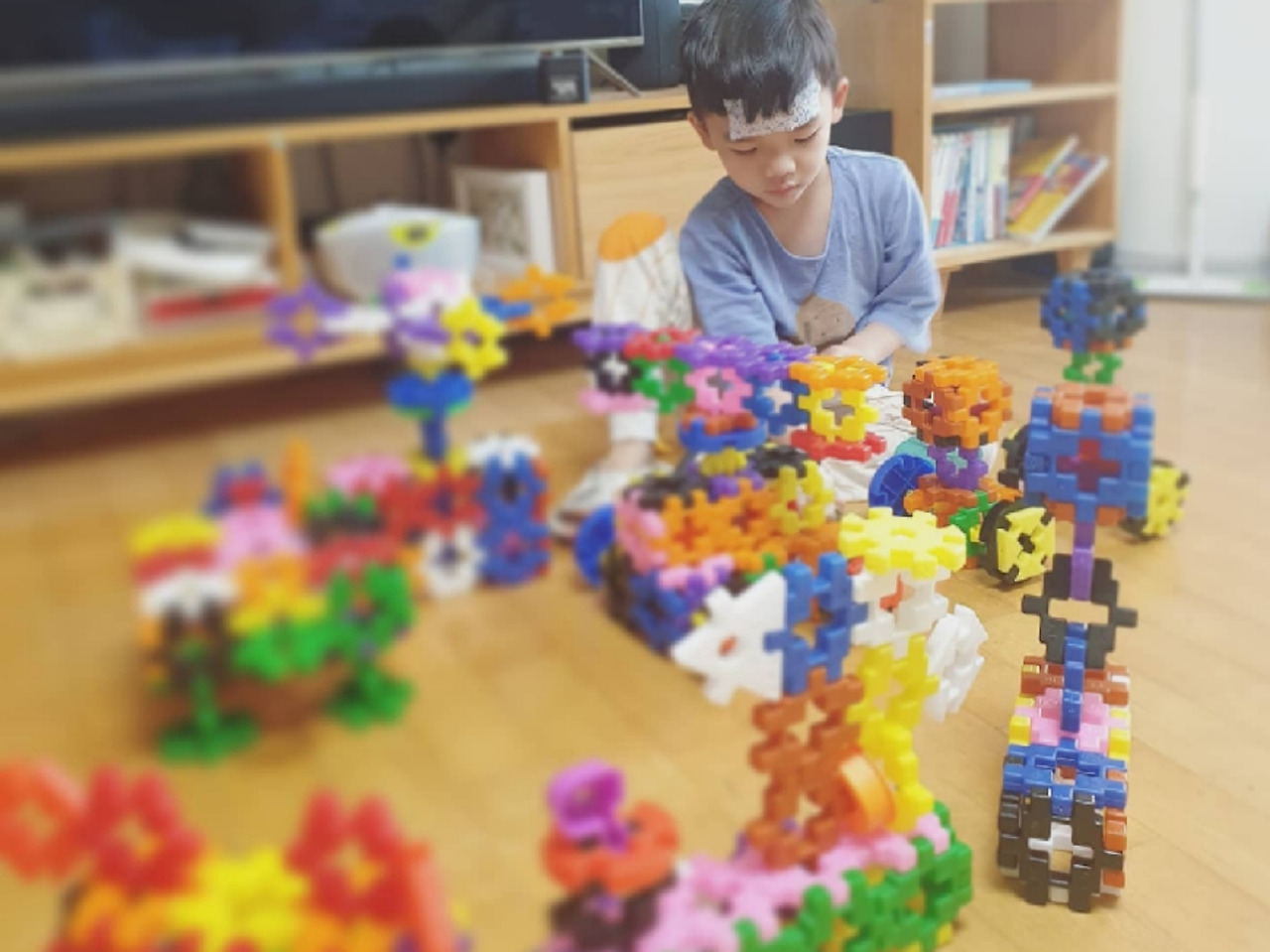 조금만 열이 내린다 싶으면 어떻게든 기를 쓰고 만들기, 색칠하기, 블럭놀이, 자동차놀이를 했다. 아파서 놀지 못하는 게 너무너무 속상하단다. 37도여도 뛰어다니던 아이는 38도에 기가 막히게 눕고 39도면 말을 잃었다. (40 숫자가 보일 때는 내가 기절할 뻔했다.)