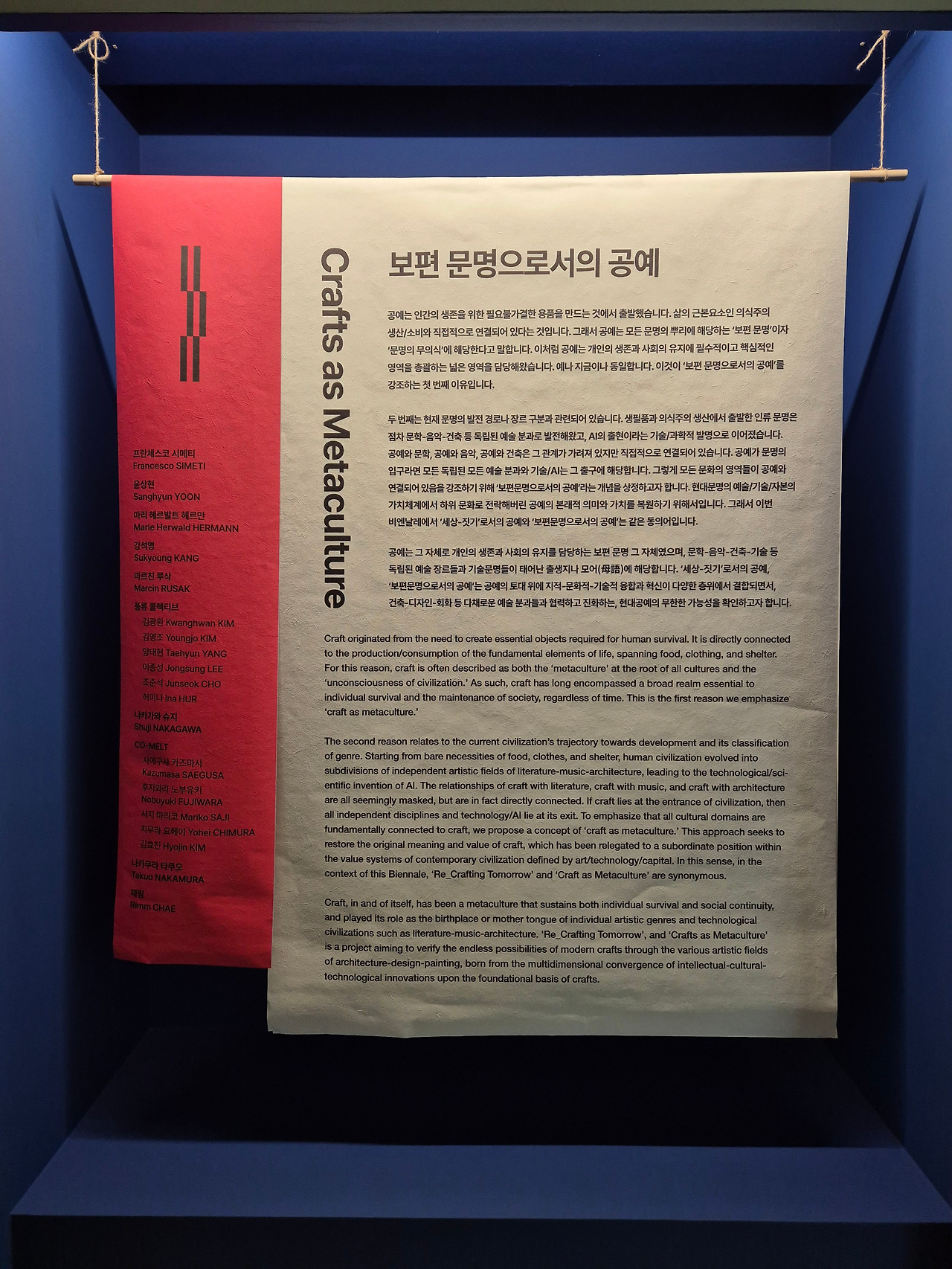 '보편 문명으로서의 공예'에서는 인류의 공예를 건축, 회화, 디자인으로 진화 발전해 온 경로와 관계들을 추적하며, 공예에 바치는 오마주,