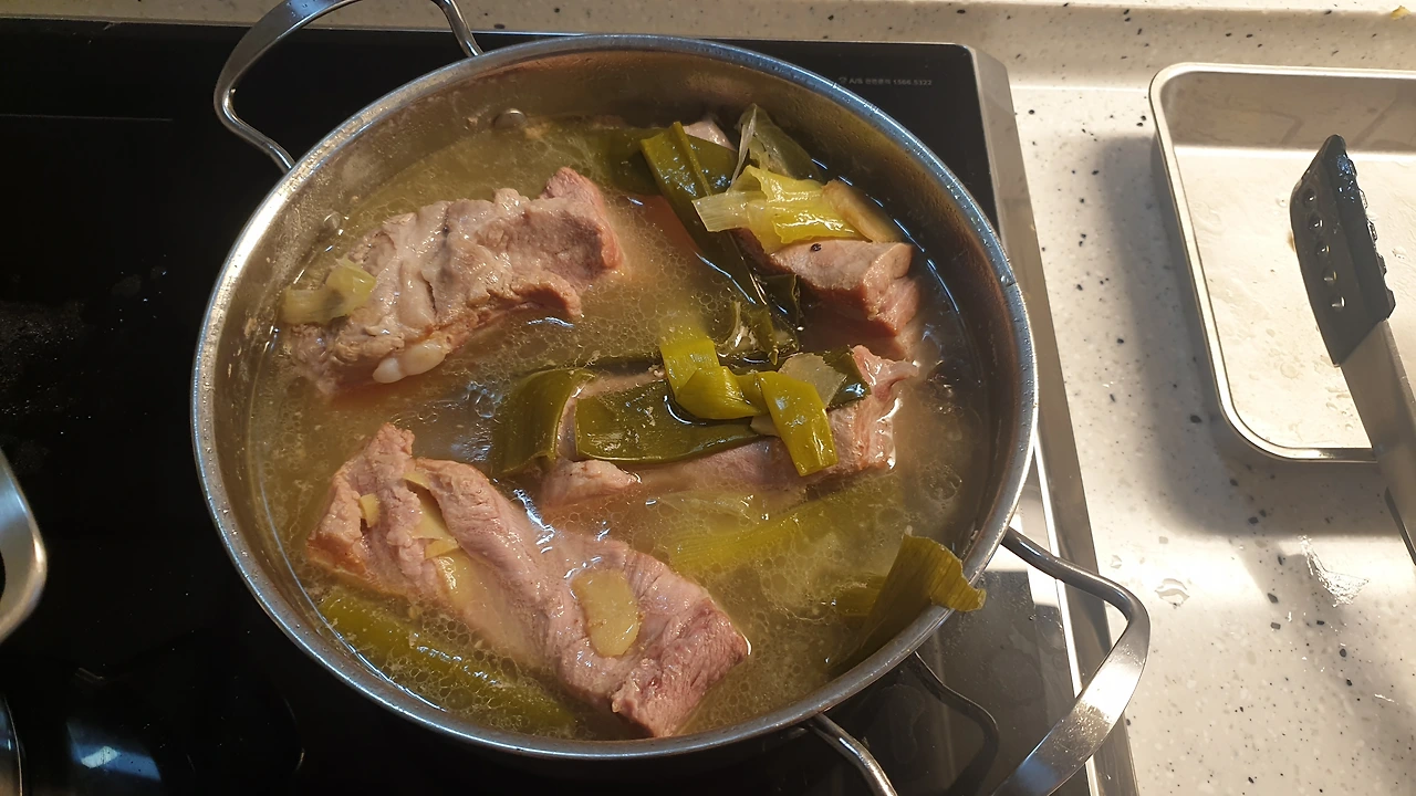 90분 정도 끓인 물은 모조리 다 버렸지만 그렇다고 육향이 덜 하다거나 밋밋하다거나 그런 느낌이 없었다.