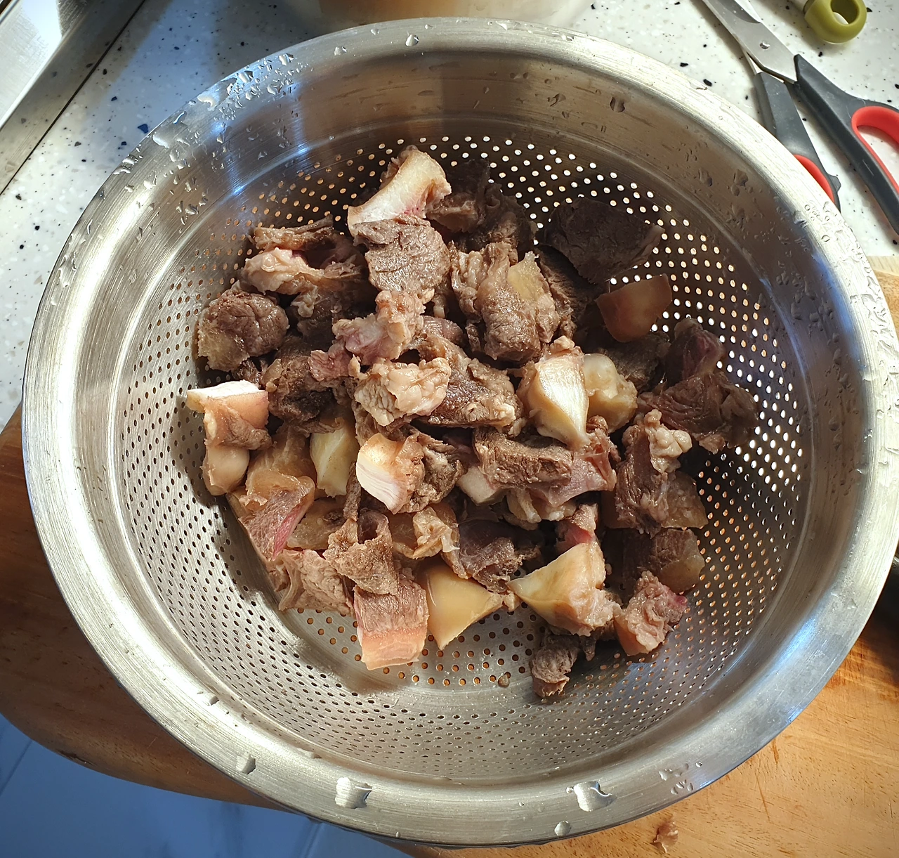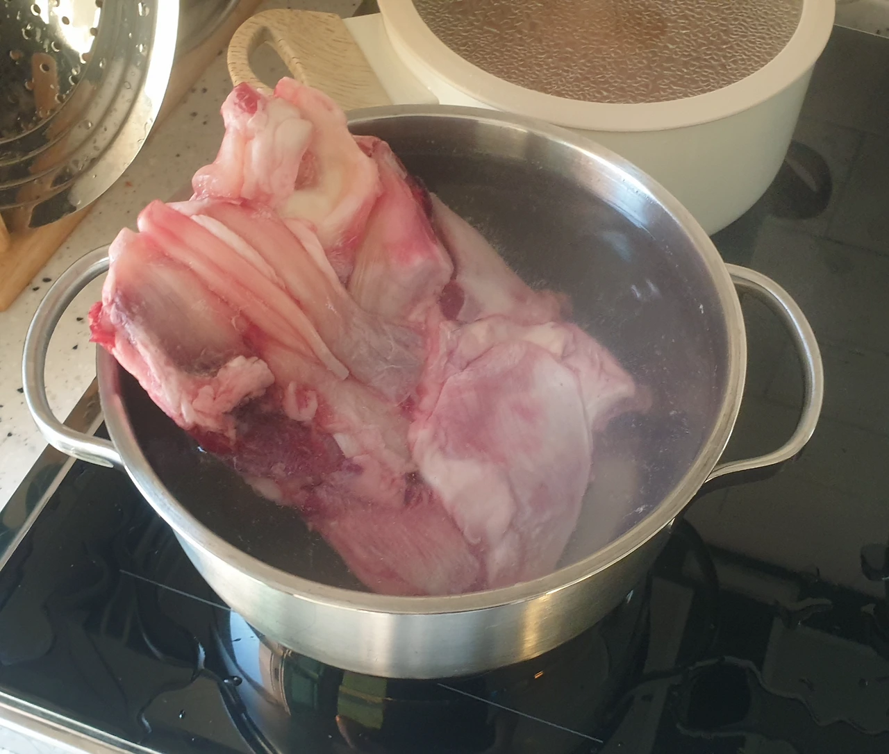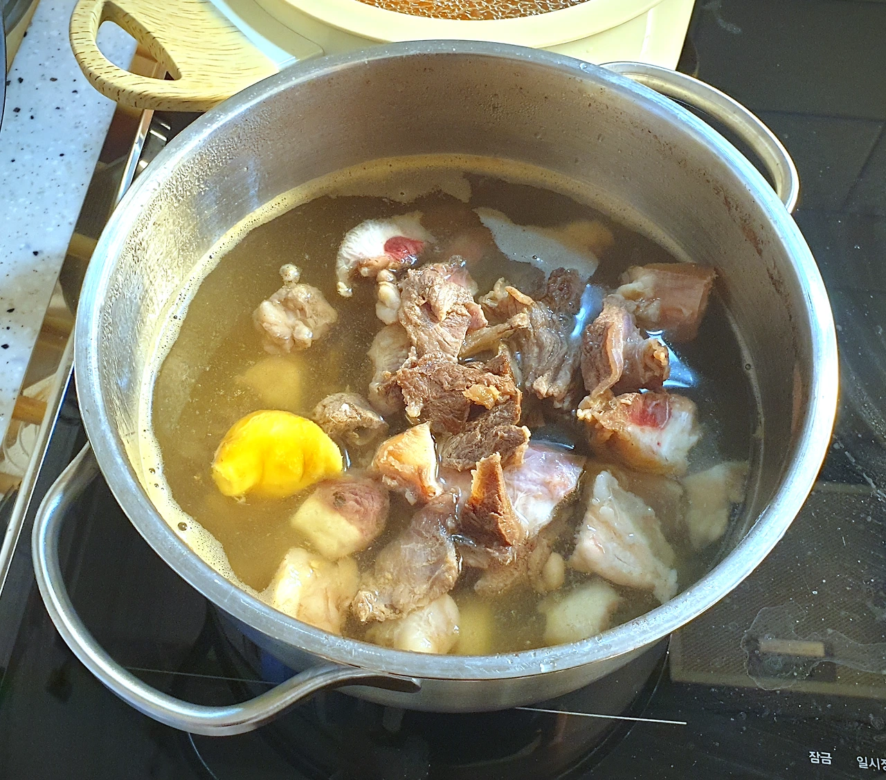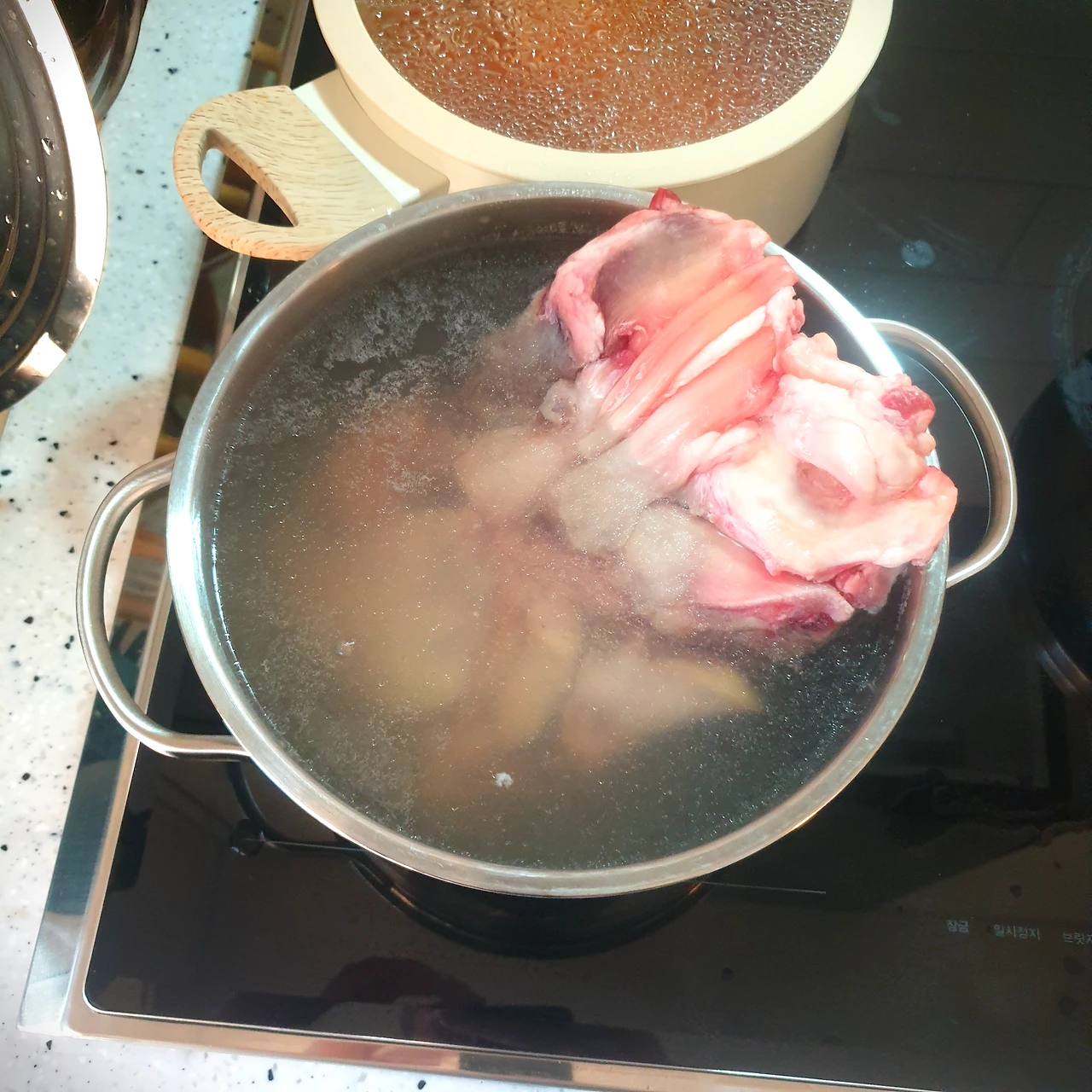 5분간 끓인 스지를 꺼내