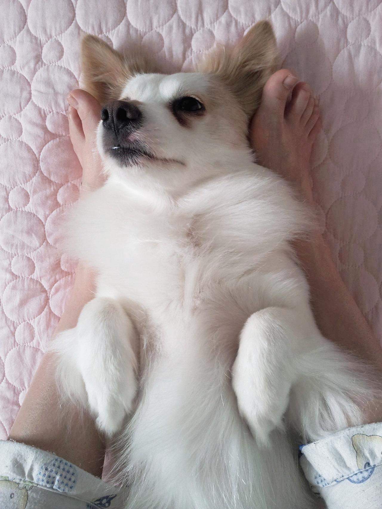 그렇게 나의 냄새와 섬유의 촉감으로 흰둥이는 안정감을 느끼며 열심히 물고 뜯었다.