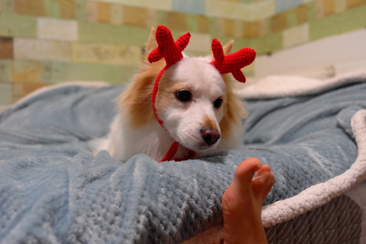이렇게 예쁘게 앉아 세상 순한 얼굴을 하고 있는 흰둥이를 야단칠 수는 없다. 양말은 또 사면 되니까.