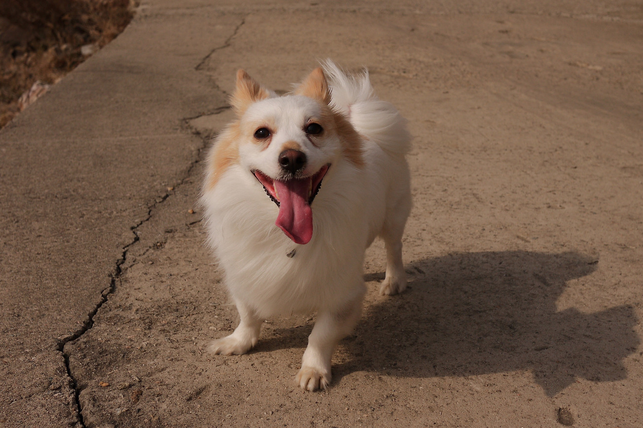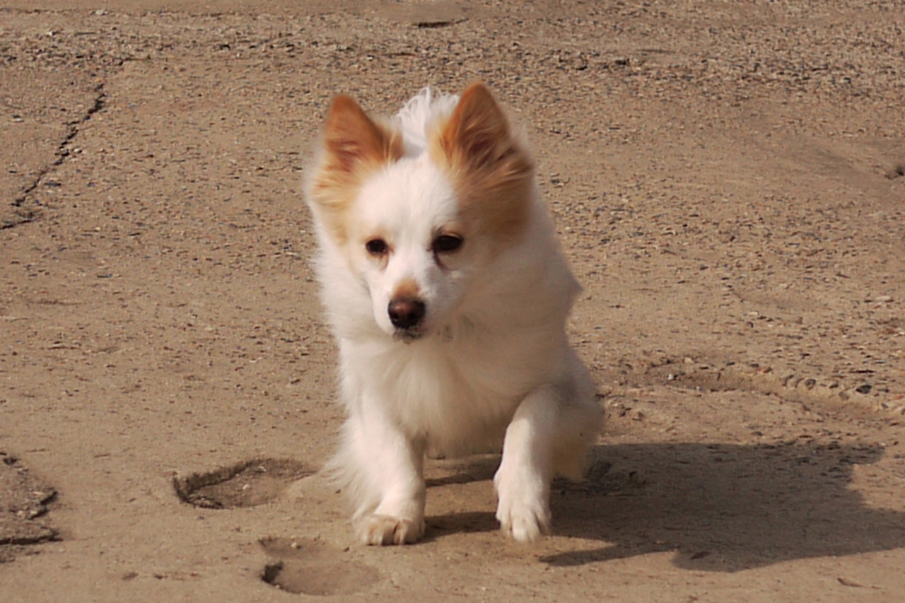 사람이 없고 차가 다니지 않는 곳에서 흰둥이는 신나게 달린다.