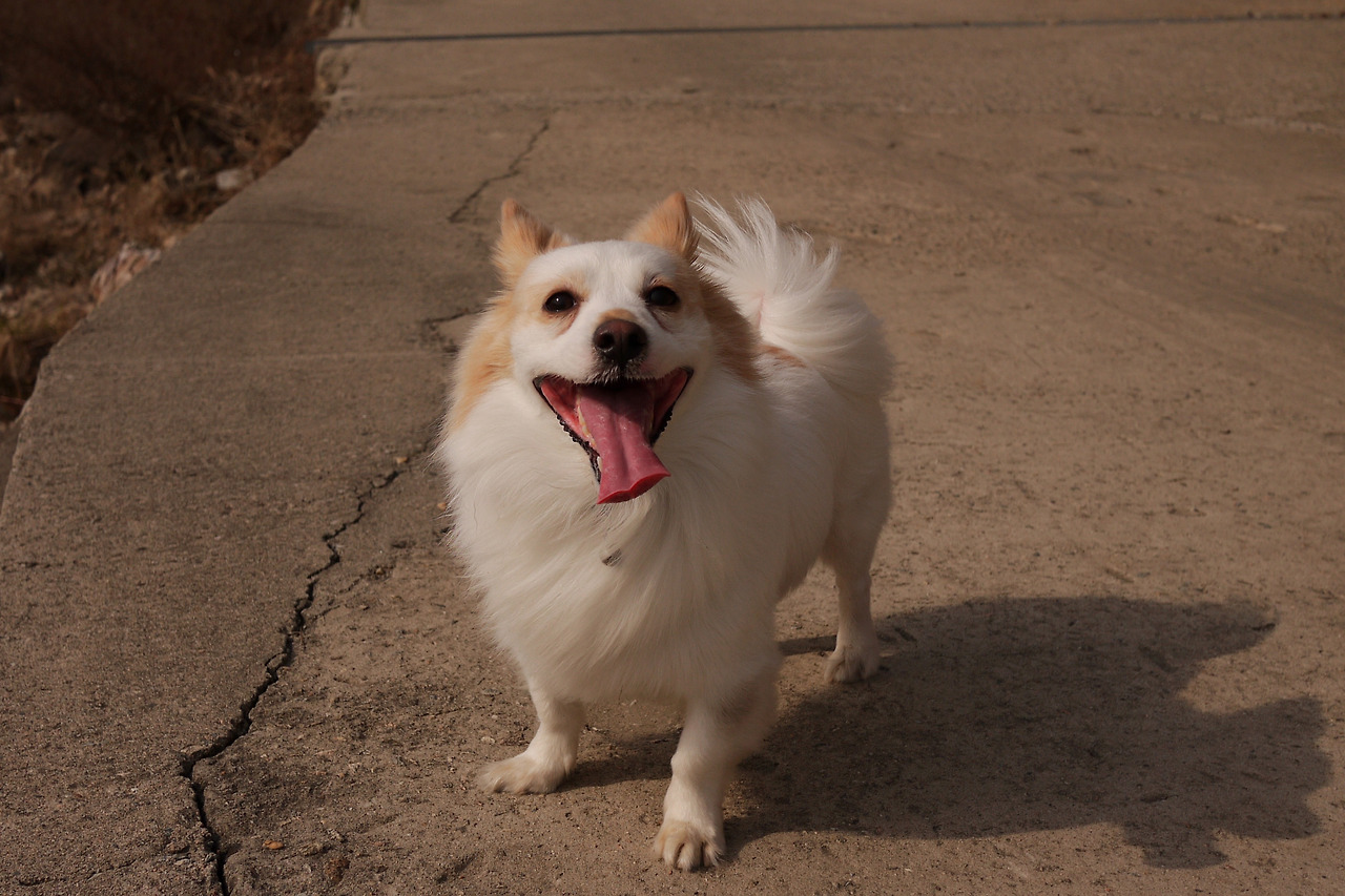 잠깐이지만 마음껏 달릴 수 있었던 흰둥이는 그림자까지 싱글벙글 어여쁘다.