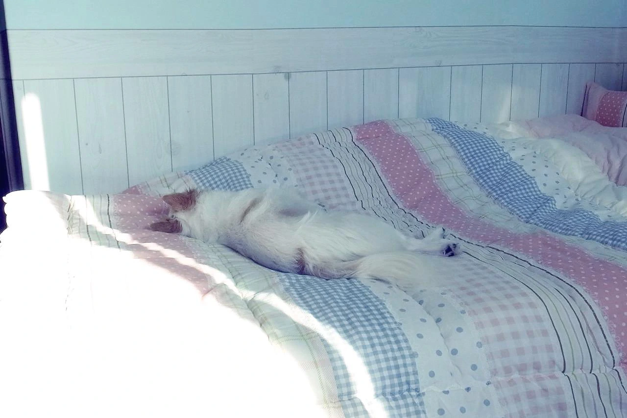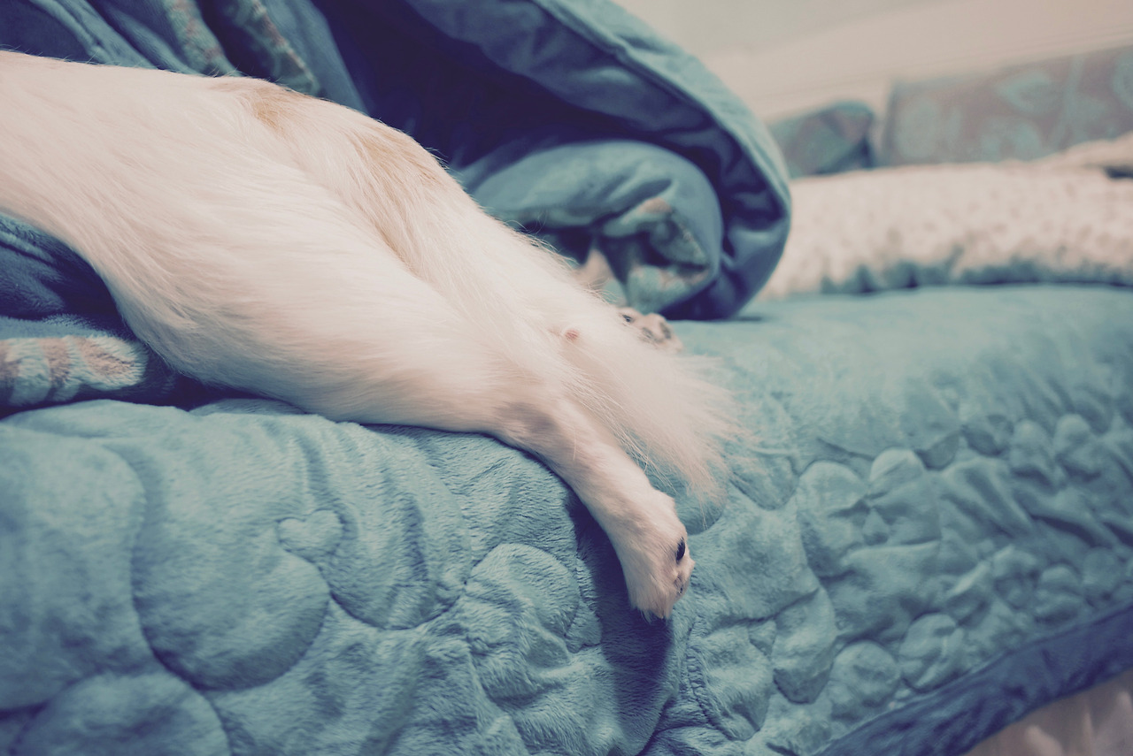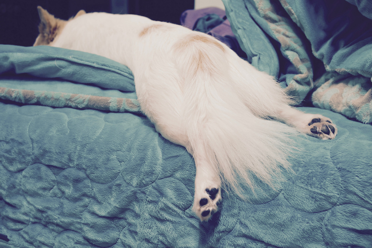 남다른 소화력을 지니고 있어도 한없이 먹다 보면 엄마의 말씀대로 흰둥이의 배는 짜구가 날 정도로 빵빵해진다. 그렇게 몸이 둔해진 흰둥이는 미쳐 침대에 다 오르지도 못한 채 뻗어 버린다.