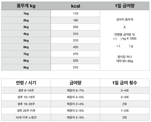 제조사마다 차이는 있지만 사료 포장지에 체중 대비 하루 급여 적정량을 설명하고 있으니 각자 급여하고 있는 사료의 성분표를 꼼꼼히 확인할 필요가 있겠다.