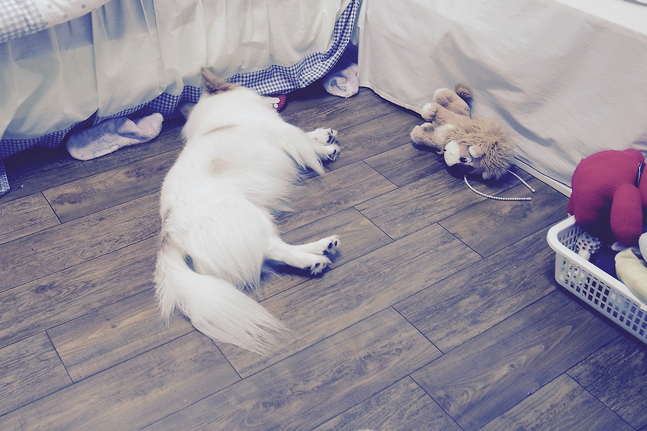 흰둥아~ 표정이 왜 그래? 귀찮아?