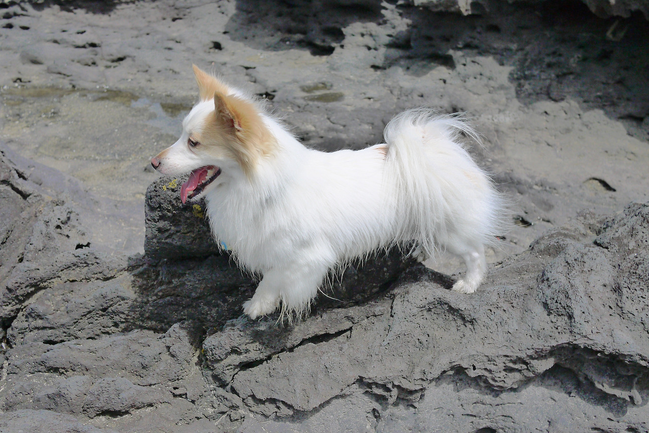 가족들이 식사할 동안 나는 흰둥이와 식당 주변 바다를 돌아보았다. 함께 식사하거나 체험할 수는 없어도 제주엔 보고, 듣고, 냄새 맡을 길들이 무수히 많았다. 눈에 보이는 풍경마다, 코에 닿는 냄새마다 신기하고 궁금하다는 듯 흰둥이는 제주도 그 길 위를 걷고 있었다.