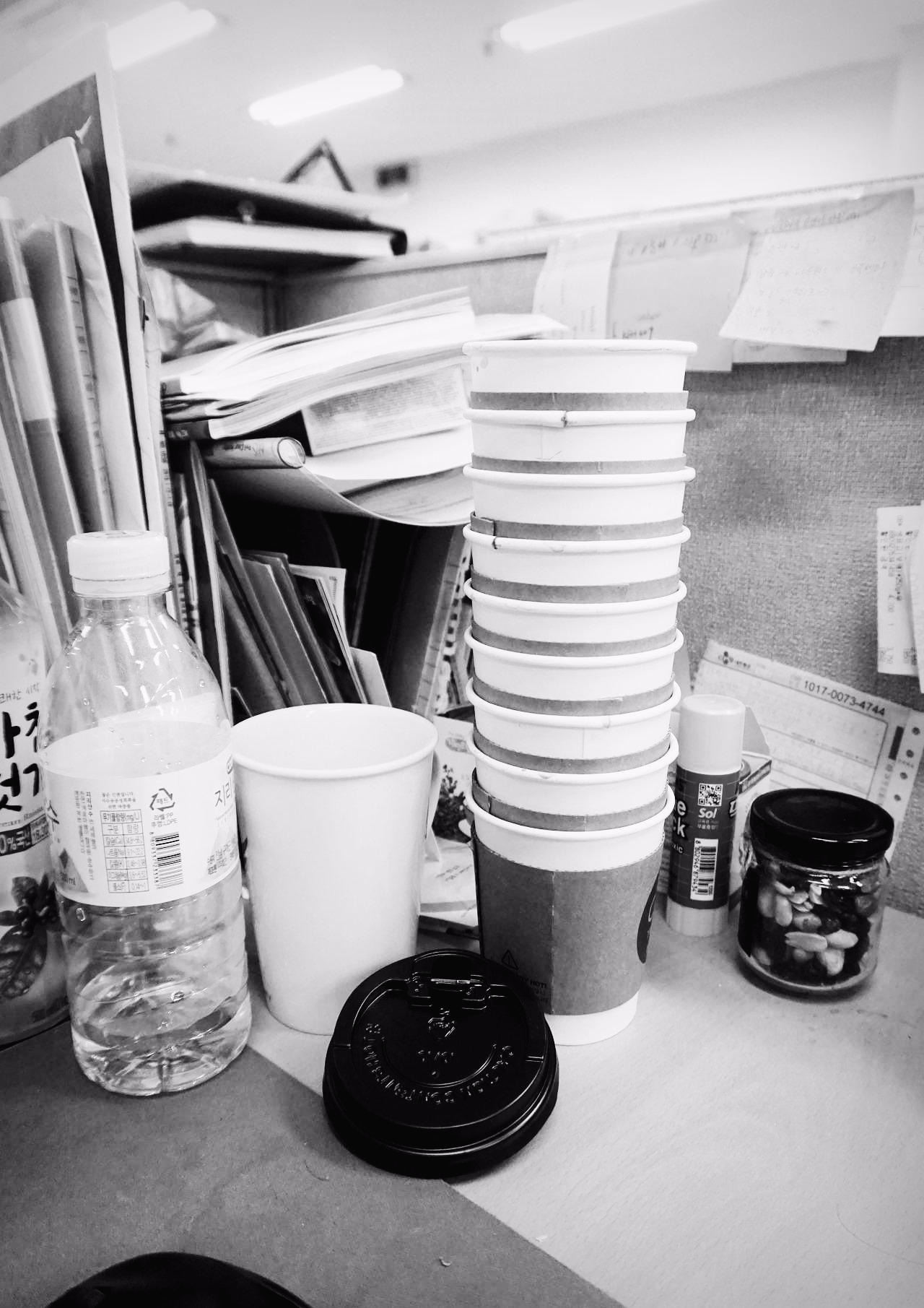 커피 컵이 나이테처럼 쌓인다.