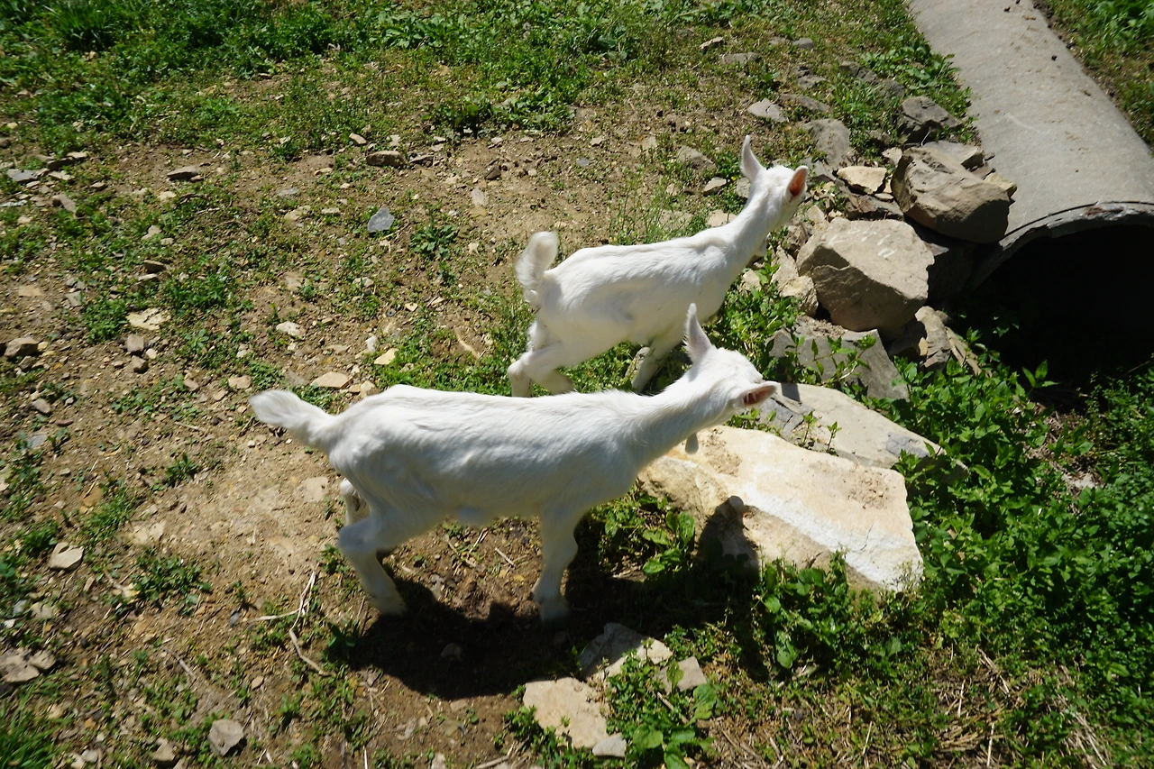큰 녀석들을 다 보고 나서 태어난지 두 달 된 아기 산양들을 보러 간다. 강아지만 한 것들이 색은 눈처럼 하얗고 날씬하게 잘빠진 다리와 하늘을 향해 쫑긋 서있는 귀가 무척이나 귀엽다. 사람을 무서워하지 않아 놀아달라며 마구 달려드니 오히려 사람들이 도망 다니기 바쁘다.