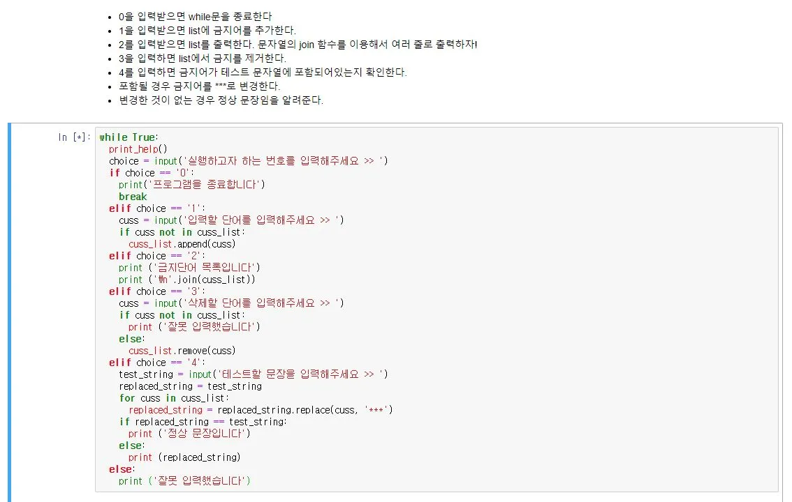최근 기사에 댓글이 사라지고 있다. 또는 봇이 욕설을 판단해서 댓글을 볼 수 없게 만든다. 이처럼 온라인에서는 실명이 아닌 가명(닉네임)으로 활동하다 보니 생각 없이 비난하는 댓글을 남기고 큰 파장을 불러일으킨다. 지금까지 배운 내용을 이용해 욕설을 ***로 치환하는 간단한 코드를 작성해보자.