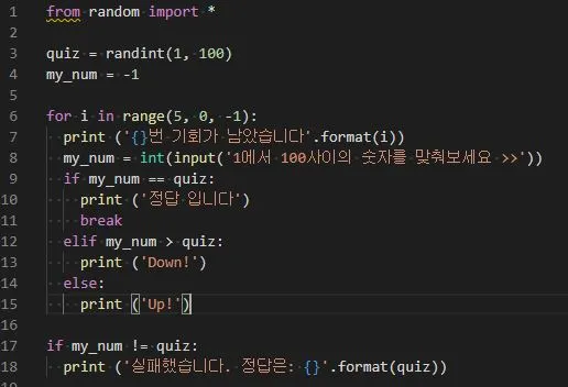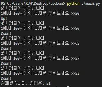 숫자 1에서 100사이의 숫자를 5번의 기회동안 맞추는 게임을 만들어보자