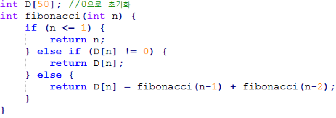 피보나치[4] = 피보나치[3] + 피보나치[2] 로 표현할 수 있다.