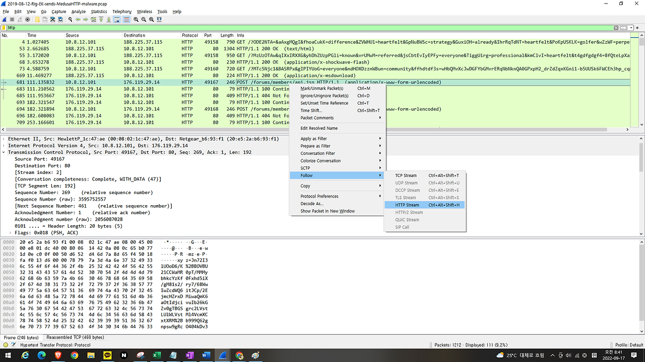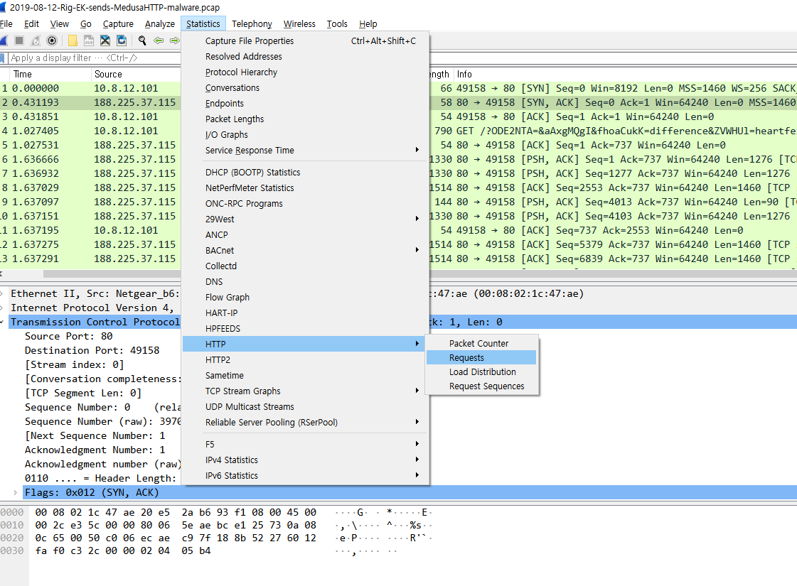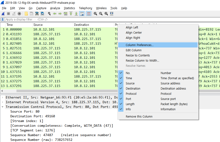 수학문제를 공부했으면 연습문제를 풀어보듯 이해를 돕기 위해 실제 존재하는 네트워크 패킷을 분석해보자