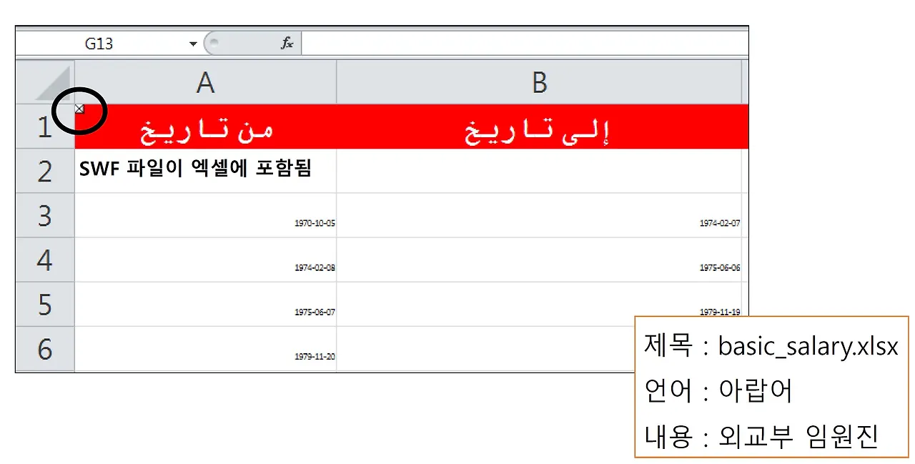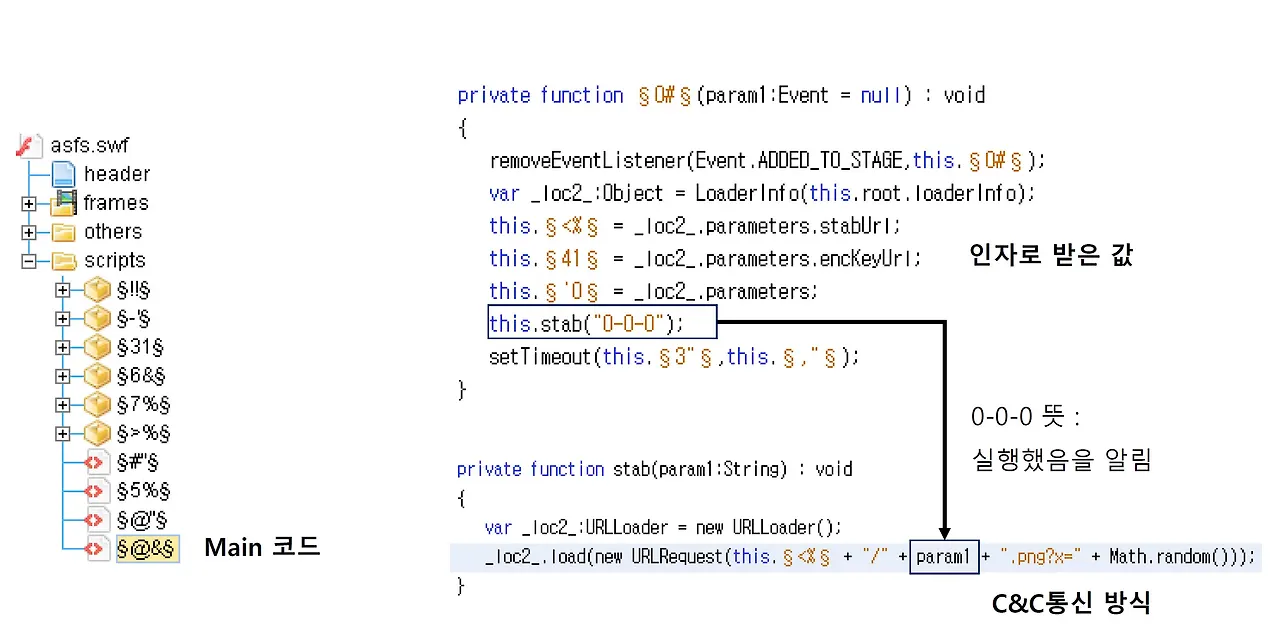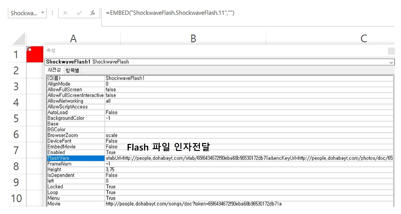 파일 내에는 swf 플래시 파일이 포함되어있는데 속성을 보면 플래시 파일에게 다른 링크를 전달하고 있다.