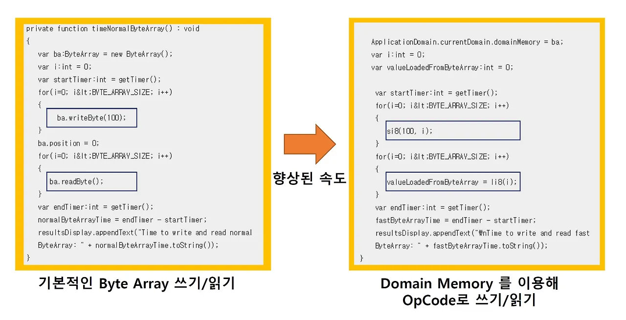 이는 byte array에서 데이터를 빠르게 읽고 저장하기 위해 Domain Memory를 지정하고 OpCode로 읽기/쓰기 작업을 하는 방법이다.