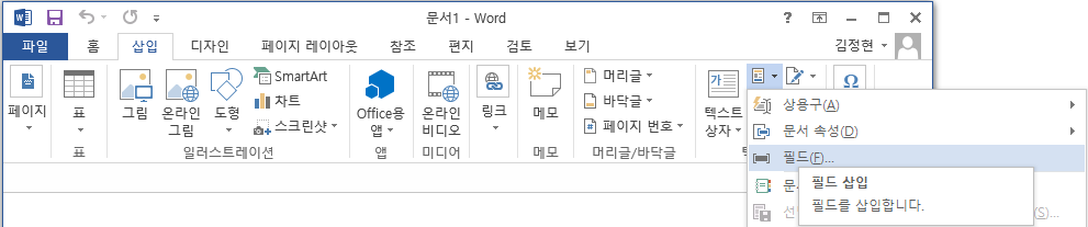 이 취약점은 누구나 만들 수 있는데 다음 사진처럼 필드삽입, 컨트롤+F9를 {} 창을 만들고 여기에 다운로드 주소를 넣는다. 다운로드