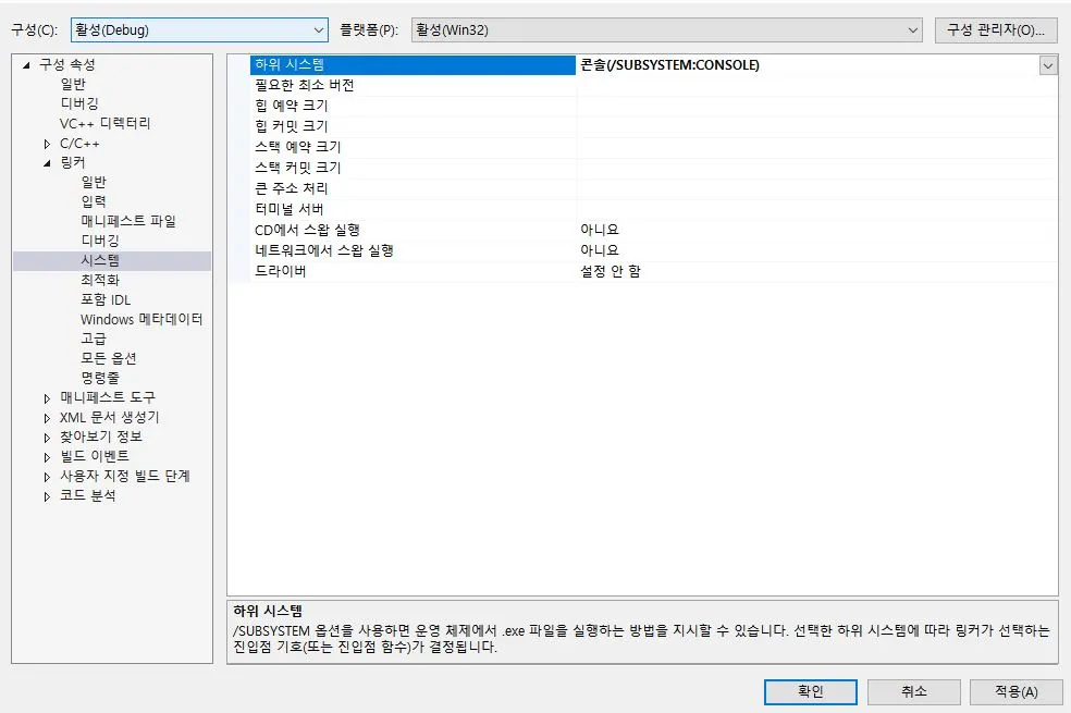 팁: 디버깅하지 않고 시작을 눌렀는데 창이 종료된다면 다음과 같이 설정해보자