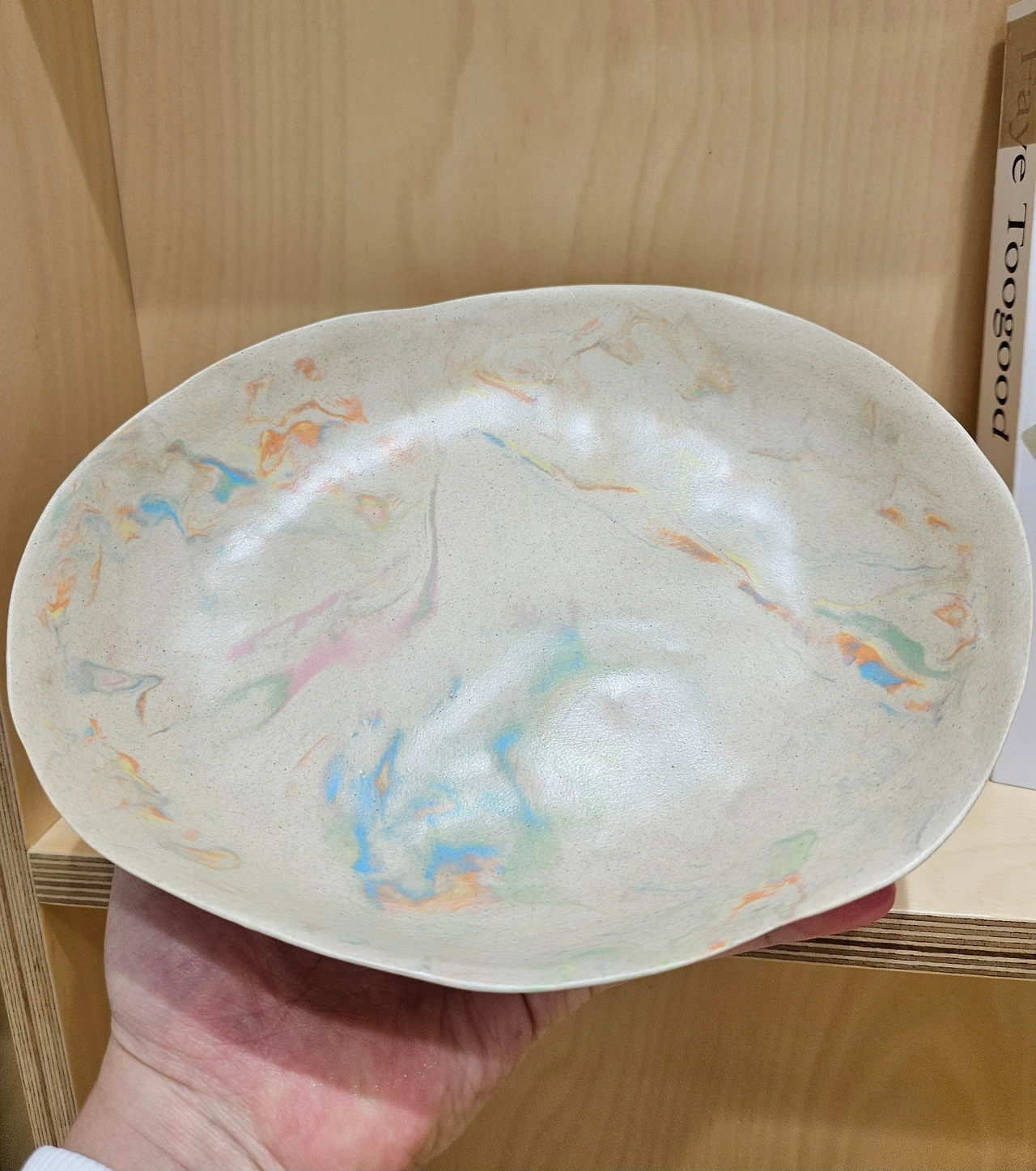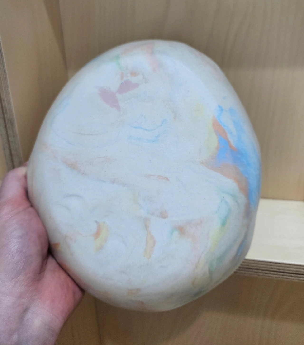 어떤 색이 어떻게 섞일지 어떤 무늬가 나올지 미리 계산하지 않았습니다. 그저 손이 가는 대로 남은 색들이 자연스럽게 어우러지도록 툭툭 빚어보았습니다.