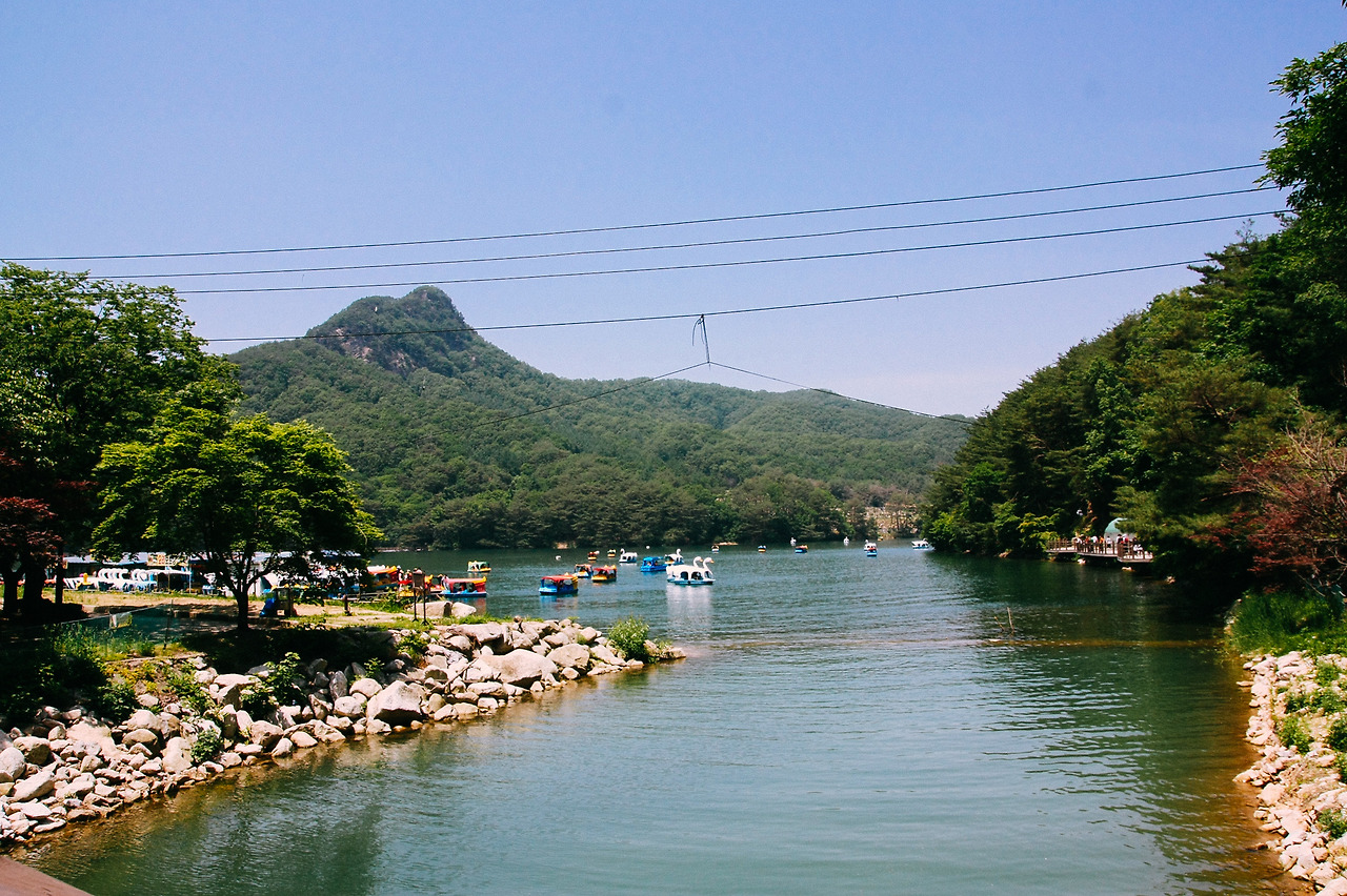 둘째주 주말 아침부터 우리 세가족은 전날부터 주문한 참치 김밥 5줄을 찾고 산정호수로 떠났다. 몇 시간이 지났을까. 우리는 벌써 도착해 있었다. 넓은 주차장에는 관광 버스들과 차들로 꽉꽉 찼고 사람들은 하나같이 약속한듯이 셀카봉을 들고 있었다. 주차장에서 조금 걷다보니 호수가 보였다. 너무 아름다웠다. 나는 카메라를 들고 연사를 찍기 시작했다. 산정호수 한 바퀴를 걷다 보니 대략 한 시간 반이 소요 됐다. 시간이 촉박한 분들께는 반바퀴만 돌 것을 권유하고 싶다.
