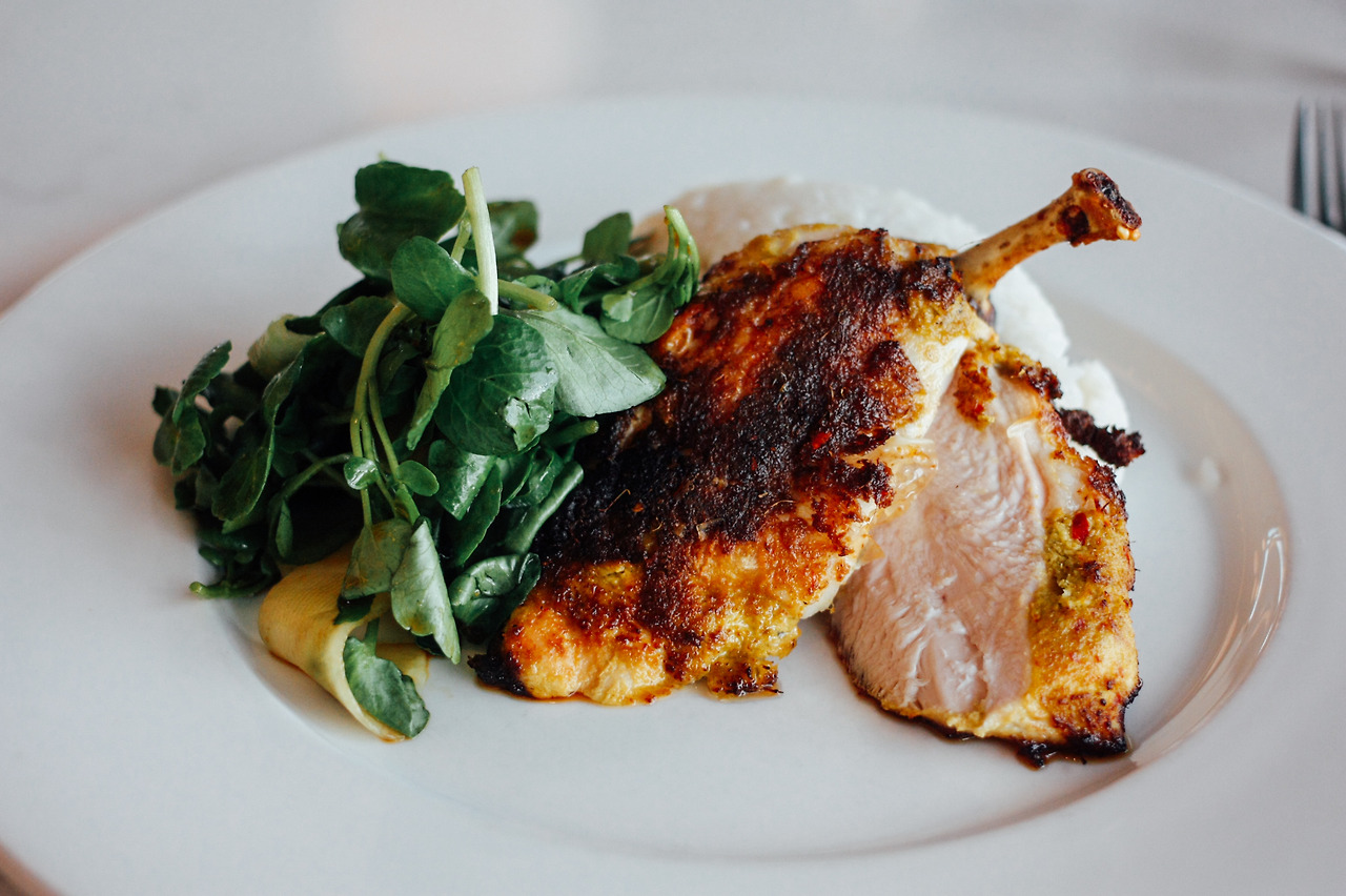 메뉴를 쭉 훑어보니 '아, 이거다!' 싶은 요리가 있었다. 그건 바로 Lemongrass chicken with sticky coconut rice. 밥을 애정 하는 나는 코코넛 라이스가 심히 눈에 띄었다. 솔직히 닭은 아웃 오브 안중이었고, 고기 곁들이로 좋은 간장 소스 샐러드도 내 선택에 한몫했다. 나는 고민할 필요 없이 바로 주문했다. 몇 분이 지났을까? 내 요리가 나왔다. 사진에서 보이는 것처럼 닭은 크지 않았다. 하지만 비주얼은 너무 맛깔스러워 보였다. 살코기는 부드러웠고 내 입안에선 레몬 그라스 향이 계속 맴돌았다. 게다가 샐러드도 환상적이었다. 내가 알던 간장 소스와는 달리 시큼한 맛이 났고 얇게 썬 오이는 바삭한 식감을 살려주었다. 지금 다시 생각해보니 오이가 신의 한 수였던 것 같다.
