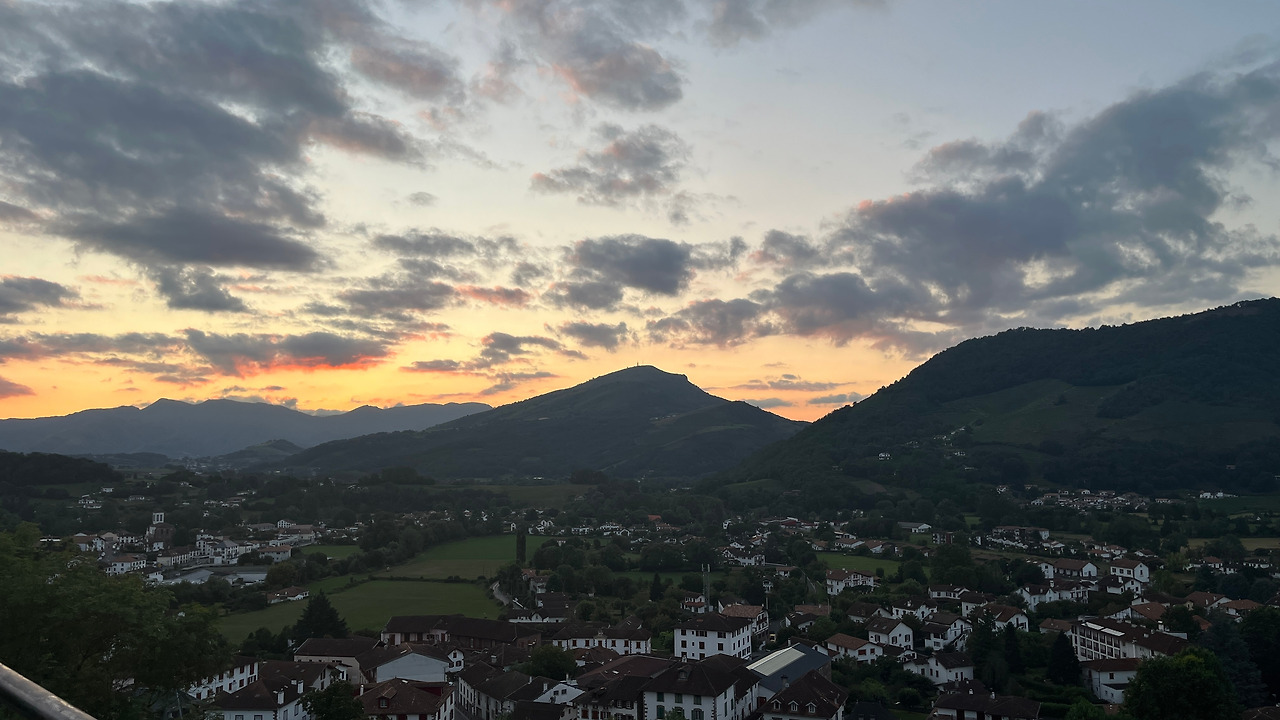 긴 시간이 남았다고 생각했지만 어느덧 8월, 눈을 떠보니 정말 나는 생장(프랑스 순례길의 시작점)에 와 있었다. 순례길을 시작하기 전 마지막날은 노을이 참 예뻤다. 사실 아직 실감이 나지 않던 이 긴 길의 시작에 그저 아기자기한 마을이 참 귀여웠달까.