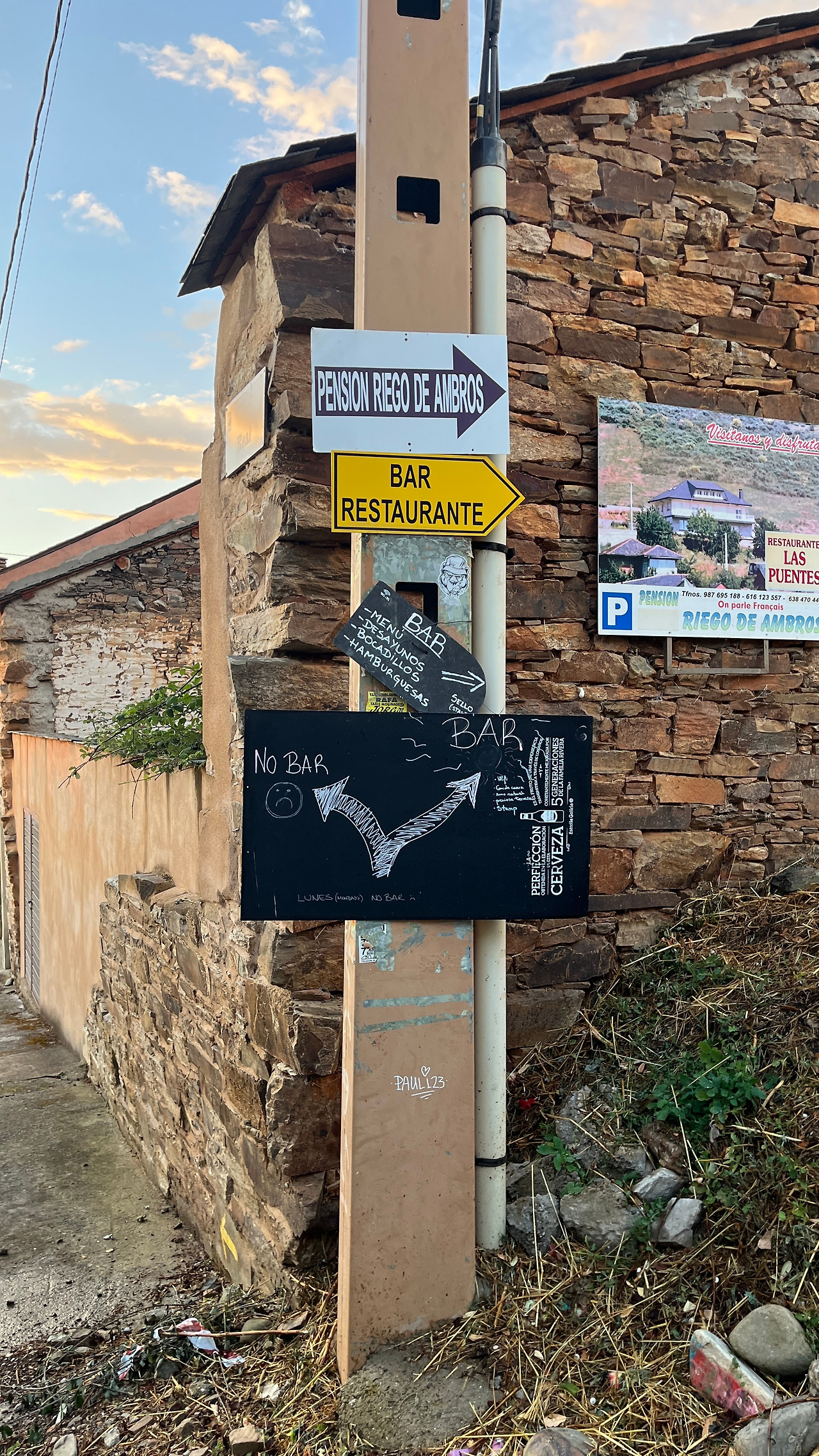 숨이 턱끝까지 차오르다가 뒤를 돌아 풍경을 바라보고, 또다시 목 안의 두근거림을 느끼다 보니 어느 마을에 도착했다. 마을 초입에 있는 바는 순례객들로 붐볐고, 나도 커피를 마시기 위해 안으로 들어갔다. 왠지 모를 익숙함이 느껴지는 공간이었다. 순례길에서는 보기 힘들었던 메뉴판이 벽이 붙어있었고, 은은한 커피 향과 또 다른 향기가 함께 섞여 공간을 채우고 있었다. 아, 도시의 향기! 스페인 산 중턱 시골에서 이런 카페를 만나다니, 너무 익숙해서 낯설었다.