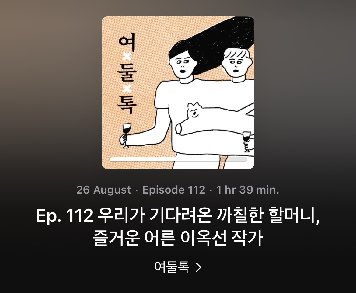 그렇게 길을 걷다가 무료한 시간을 조금이라도 빨리 흘려내보고자 오랜만에 팟캐스트를 틀었다. 한국에 있을 때에는 매주 챙겨 듣던 것인데, 해외에 있으며 영어를 공부한다는 핑계로 멀리 밀어두었던 것이었다.